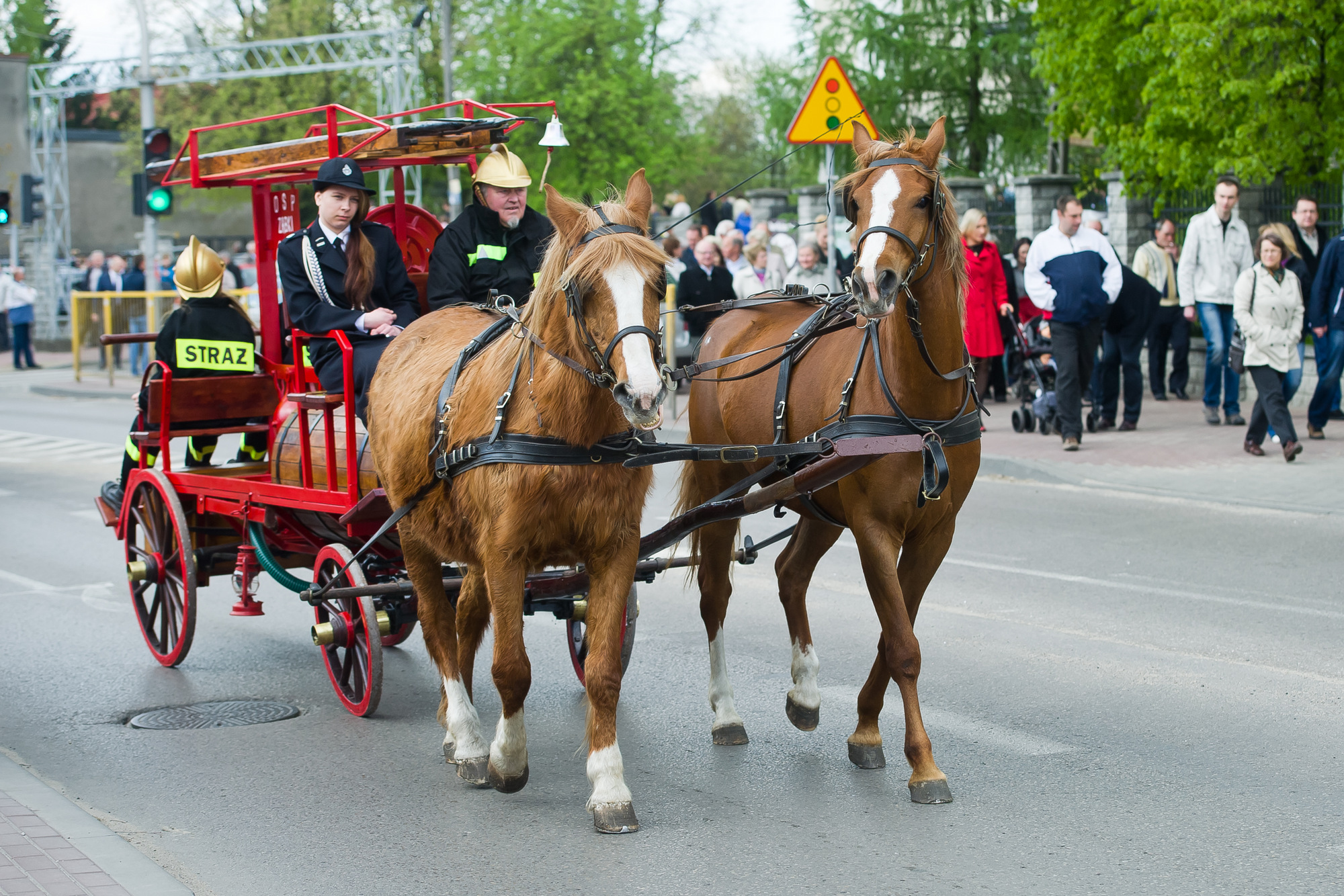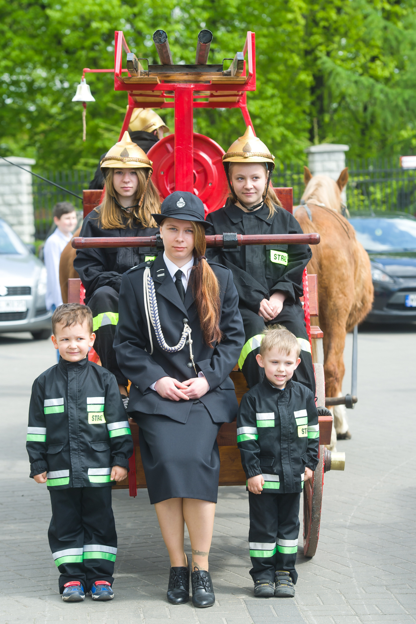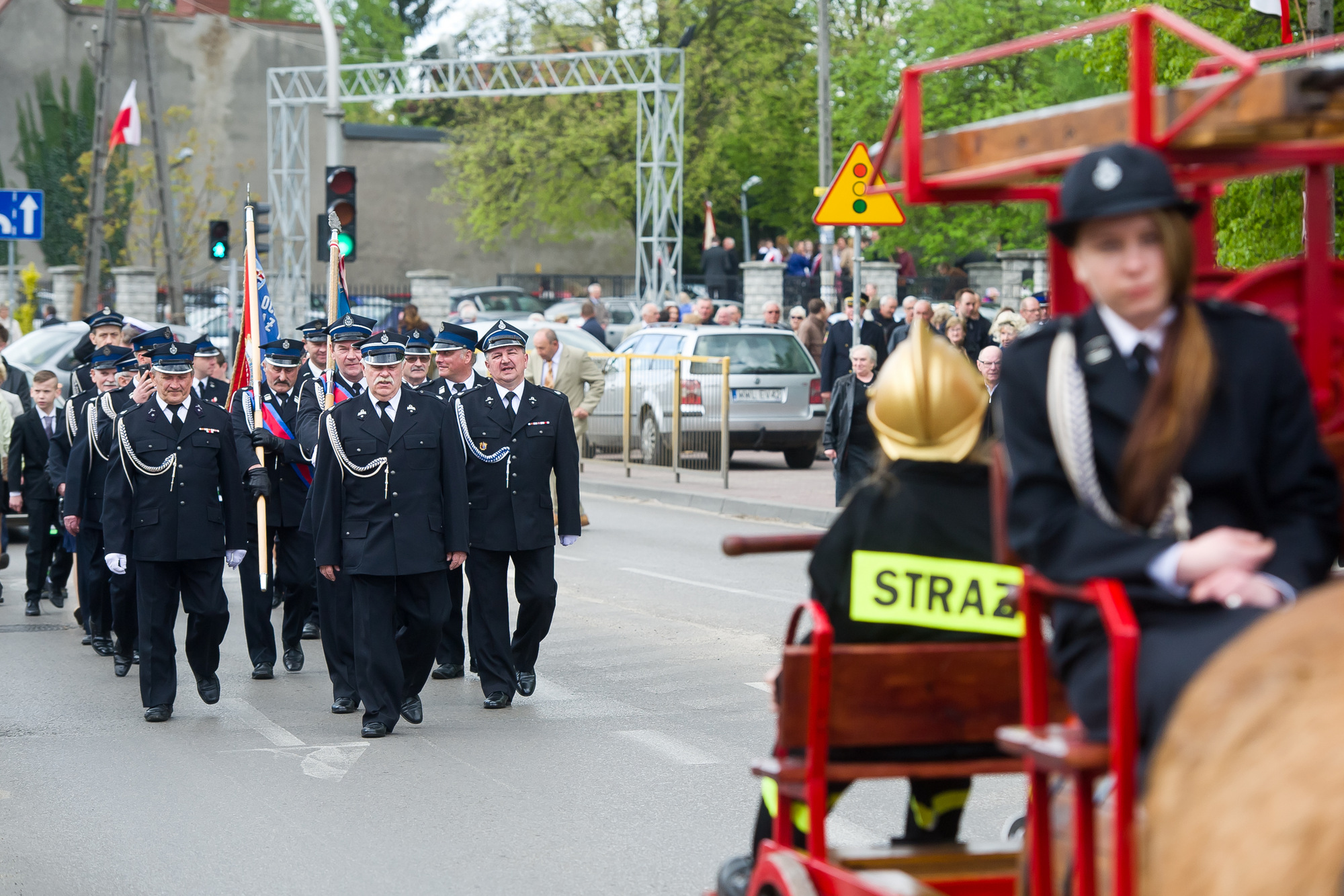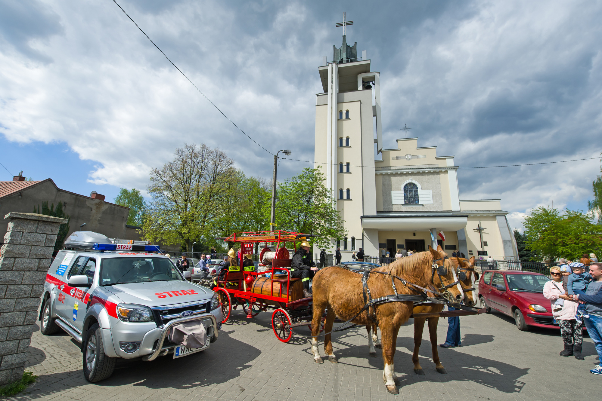 Po mszy nastąpił przemarsz spod kościoła pod jednostkę Ochotniczej Straży Pożarnej. Przemarszowi towarzyszył konny zabytkowy bojowy wóz strażacki z 1893 r. z oryginalną pompą z 1920 r. , który został poświęcony a także przetestowany pod kątem możliwości gaśniczych, co było niewątpliwą atrakcją dla dzieci.