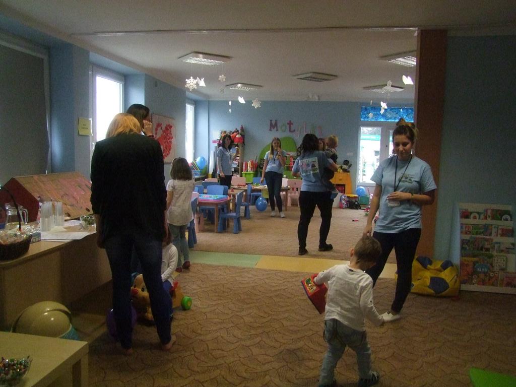 Rodzice przychodzili wraz z maluchami, które być może staną się podopiecznymi przedszkola, czy żłobka. Młodzi, sympatyczni rodzice Antka też zawitali skuszeni ofertą. Na maluchy czekał uśmiechnięty personel – przemiłe panie, które zadbały o liczne zabawy i mnóstwo muzyki. Przygotowano kącik plastyczny, kącik fryzjerski, kącik kulinarny…. Nawet można było pomalować buzię wzorami ze świata fantazji i oczywiście tańczyć do skocznej muzyki. No, bo jak tu nie tańczyć „kaczuszek” wraz z przedszkolną maskotką? Były baloniki i słodkie prezenty dla każdego dziecka, a na rodziców czekała szeroka oferta zajęć dla ich pociech wraz z planem dnia w przedszkolu.