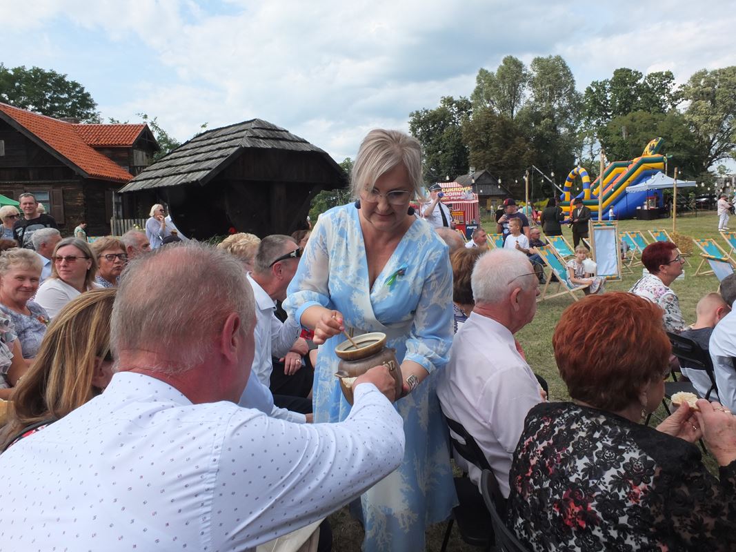 Dożynki to jeden z najpiękniejszych staropolskich obrzędów rolniczych od wieków zakorzeniony w naszej kulturze. Są cennym przejawem kultywowania wyjątkowej tradycji święcenia darów ziemi, dzielenia się chlebem oraz wspólnego świętowania. W minioną niedzielę, 4 września 2022 r. Skansen im. Marii Żywirskiej w Brańszczyku wypełniony był po brzegi gośćmi z różnych miejscowości całego powiatu i wszystkich pokoleń. Tegoroczne dożynki Gminno -Parafialne mieszkańcy rozpoczęli uroczystą Mszą Świętą ze sztandarami Ochotniczych Straży Pożarnych oraz Szkół Podstawowych, celebrowaną przez ks. Proboszcza Jerzego Brzezińskiego. W tym roku poświęcone zostały trzy wieńce dożynkowe i kosze owocowo-warzywne, przygotowane przez mieszkańców z Parafii Brańszczyk, Poręba i Białebłoto. Na zakończenie Mszy Świętej Wójt gminy Brańszczyk prof. Wiesław Przybylski zaprosił wszystkich gości do dalszego świętowania. Korowód do Skansenu im. Mari Żywirskiej tradycyjnie poprowadziła Orkiestra Dęta „Darmanista”, a za nią podążali: Starostowie Dożynkowi Mariola i Jacek Grzywacz, Starosta Bartny Jan Niedźwiedź, Duchowieństwo, władze państwowe i samorządowe oraz stowarzyszenia pozarządowe, zaproszeni goście i mieszkańcy gminy. Gości powitała Dyrektor Centrum Kultury, Sportu i Turystyki w Brańszczyku Dorota Socik, a następnie ze słowami podziękowań zwrócił się do zebranych gospodarz Gminy prof. Wiesław Przybylski (całość wypowiedzi zamieszczamy obok). Wśród gości witano: posła na Sejm RP Macieja Górskiego, senatora RP Roberta Mamontowa, starostę wyszkowskiego Jerzego Żukowskiego, a także duchowieństwo, przedstawicieli służb wojskowych i mundurowych, sygnalistów i przedstawicieli Koła Łowieckiego, władze samorządowe powiatu wyszkowskiego i gminy oraz przedstawicieli instytucji państwowych i samorządowych różnych szczebli, stowarzyszeń i przedstawicieli organizacji pozarządowych oraz przedstawicieli środowisk naukowych. Szczególnym gościem podczas tegorocznych dożynek w Skansenie im. Marii Żywirskiej był wicedyrektor Państwowego Muzeum Etnograficznego w Warszawie dr Józef Zalewski. Jednym z głównych punktów części oficjalnej było uroczyste podpisanie listu intencyjnego pomiędzy dyrektorem reprezentującym Muzeum, a dyrektorem Gminnego Centrum Kultury, Sportu i Turystyki w Brańszczyku. Strony przyjęły podstawowe priorytety wzajemnej współpracy w obszarze działań związanych z organizacją Skansenu im. Marii Żywirskiej w Brańszczyku oraz konsultacji w działaniach merytorycznych, wystawienniczych, konserwatorskich, a także w dziedzinie niematerialnego dziedzictwa kulturowego oraz innych tradycji i zjawisk kulturowych Kurpi Białych.