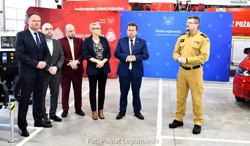 W poniedziałek, 23 lutego w strażnicy Komendy Powiatowej Państwowej Straży Pożarnej w Legionowie odbyło się uroczyste przekazanie nowo zakupionego wyposażenia, które trafiło do jednostki dzięki wsparciu środków rządowych.