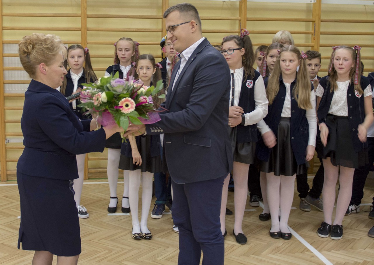 Na zakończenie oficjalnej części spotkania głos zabrał burmistrz Radzymina p. Krzysztof Chaciński, który podziękował wszystkim nauczycielom i pracownikom oświaty za ich pracę, a na ręce Pani Dyrektor złożył symboliczny bukiet kwiatów z życzeniami.