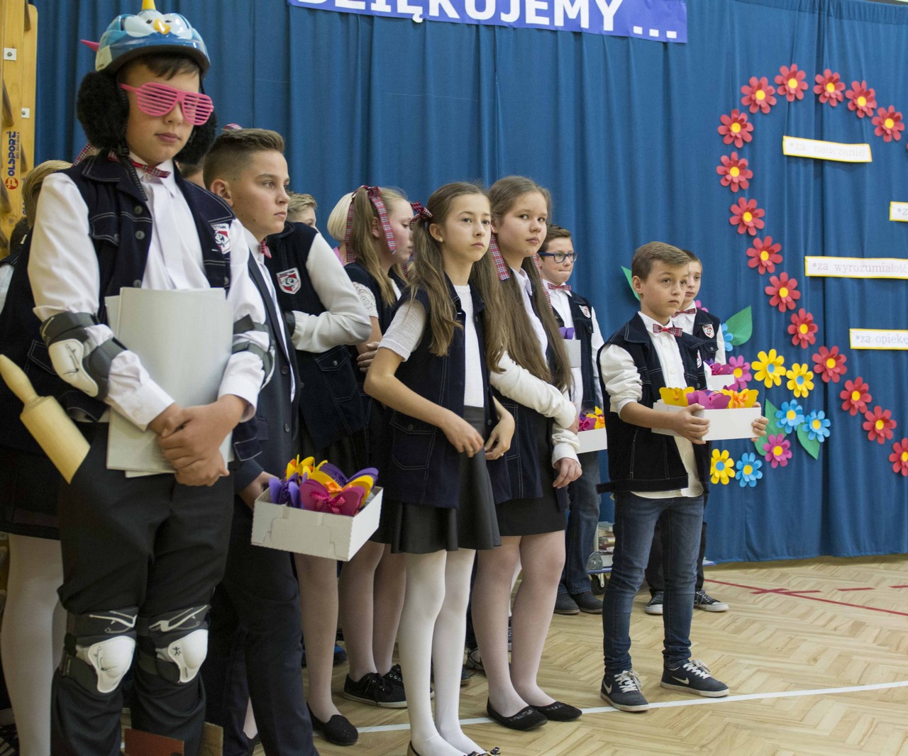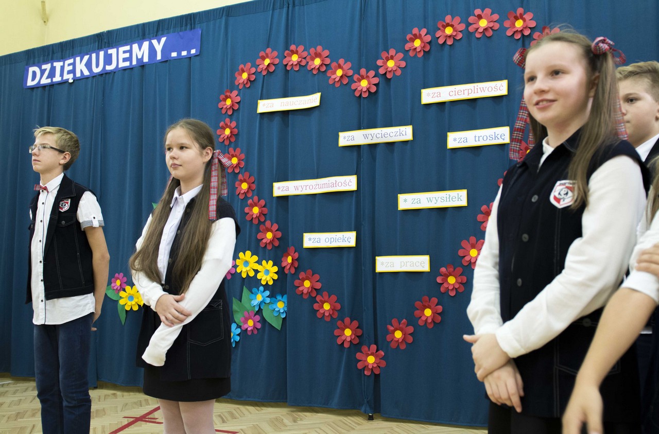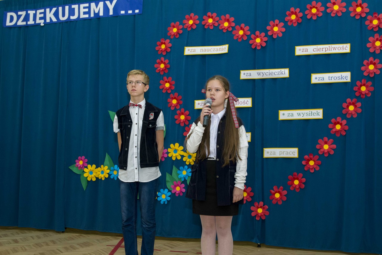 „14 października obchodzony jest Dzień Edukacji Narodowej, zwany Dniem Nauczyciela. W tym dniu życzenia otrzymują wszyscy nauczyciele i pracownicy oświaty, ale Ci najlepsi – oryginalne i wyjątkowe! A tacy są właśnie nauczyciele „Stalowej Jedynki!” – Takimi oto słowami, rozpoczęli swój występ uczniowie klasy VIc, którzy pod kierunkiem wychowawcy i nauczyciela języka polskiego p. Agnieszki Stankiewicz przygotowali montaż słowno- muzyczny dedykowany nauczycielom.
