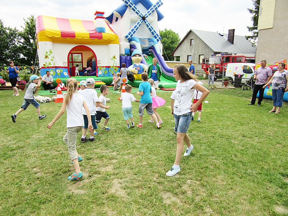 Tego dnia na dzieci czekało wiele atrakcji: dmuchane zabawki, zjeżdżalnie, kącik plastyczny, basen z piłkami, przejażdżki konikami, trening piłki nożnej. Każda rodzina mogła tego dnia wykonać sobie pamiątkowe zdjęcie. Organizatorzy zadbali również o kącik kulinarny, na stołach nie zabrakło grillowanych kiełbasek, kaszanki, smalcu oraz bigosu. Dla osłody w ramach konkursu cukierniczego mamy naszych milusińskich przygotowały wyjątkowe wypieki, które poddane zostały ocenie zgromadzonym gościom.