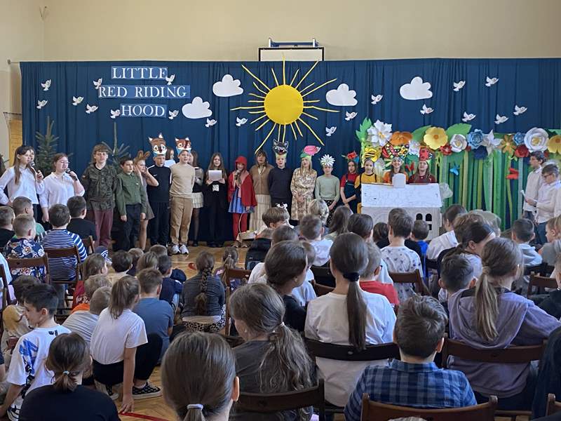 W ubiegły piątek, 4 kwietnia uczniowie Szkoły Podstawowej nr 1 im. ppłka pil. M. Pisarka w Radzyminie zaprezentowali swoim kolegom i koleżankom bajkę o Czerwonym Kapturku – Little Red Riding Hood w języku angielskim.