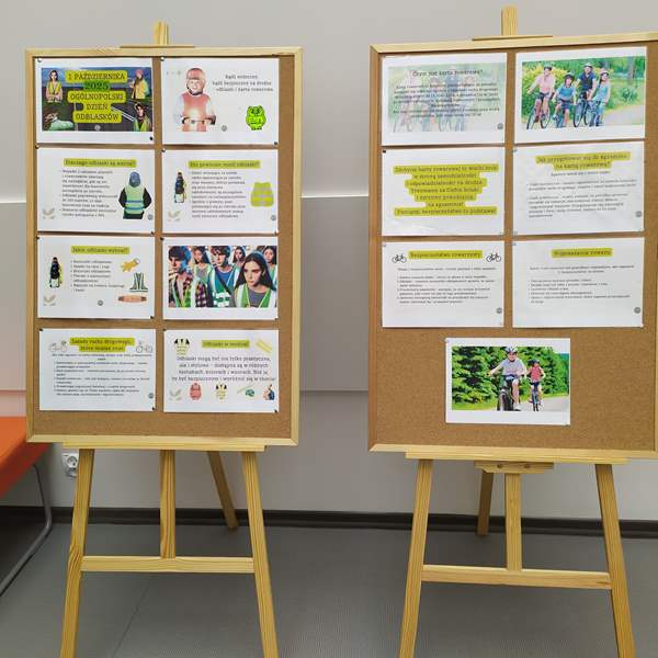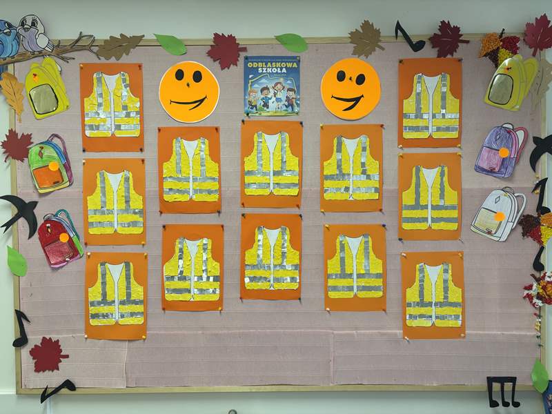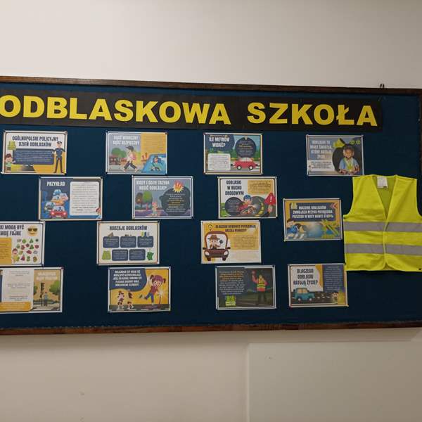 - W klasach i na korytarzach pojawiły się gazetki ścienne z hasłem „Odblaskowa Szkoła”.