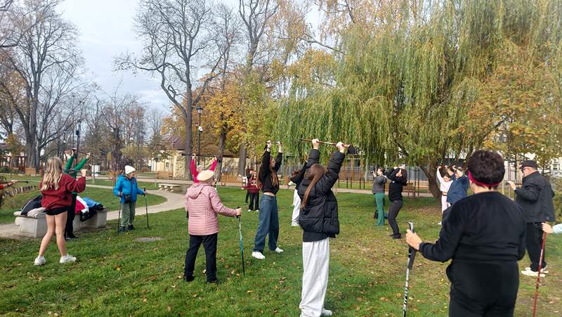 - Klasa 6e wraz z Klubem Seniora uczestniczyła w zajęciach Nordic Walking, promując bezpieczeństwo i międzypokoleniową integrację.