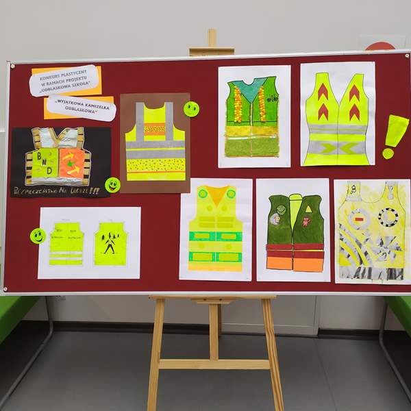 - Ogłoszono konkursy plastyczne: „Bezpieczeństwo w ruchu drogowym” oraz „Wyjątkowa kamizelka odblaskowa”, które rozbudziły kreatywność uczniów.