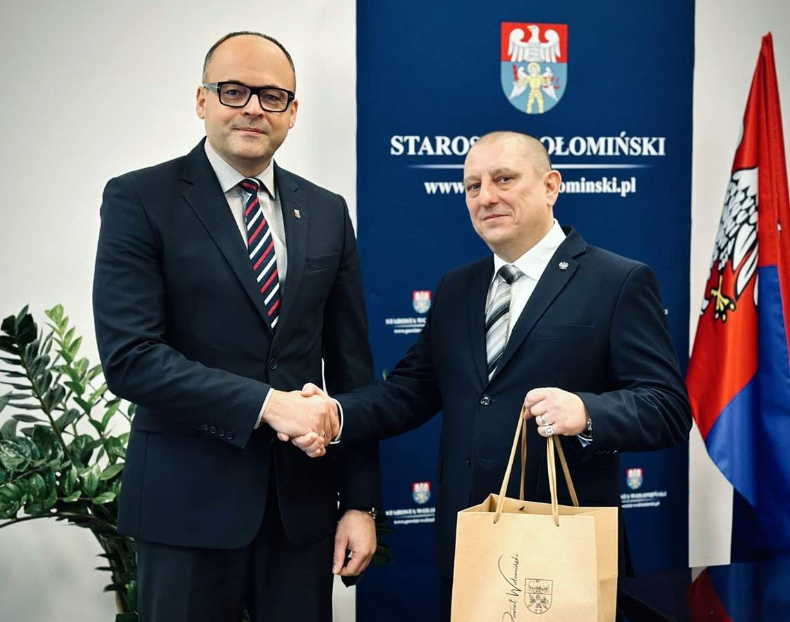 W ubiegłym tygodniu Starosta Wołomiński Arkadiusz Werelich złożył podziękowania dla ustępującego Komendanta Powiatowego Policji w Wołominie insp. Mariusza Kaszewicza, a następnie spotkał się z nowym Komendantem Powiatowym podinsp. Zbigniewem Pucelakiem.