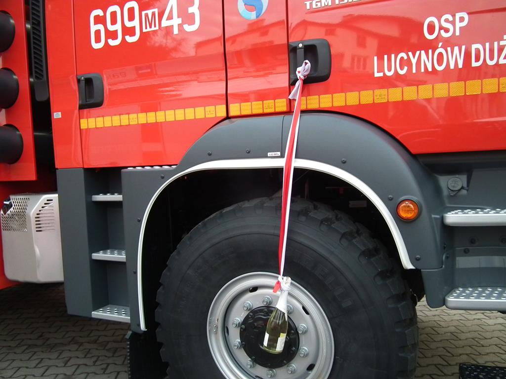 Poświęcenia przekazywanych samochodów pożarniczych dokonał ks. kan. Zdzisław Golan – kustosz Sanktuarium św. Idziego w Wyszkowie. Z kolei akt przekazania samochodów odczytał mł. bryg. Sieńkowski, a o symboliczne przekazanie kluczyków do samochodów poproszono: posła Henryka Kowalczyka, st. bryg. Mirosława Jasztala, Annę Król, starostę Jerzego Żukowskiego, wójta Pawła Kołodziejskiego, burmistrza Grzegorza Nowosielskiego i komendanta mł. bryg. Marka Krzyżańskiego. Po tradycyjnym uruchomieniu samochodów oraz krótkim zademonstrowaniu sygnałów dźwiękowych odbył się (zgodnie z tradycją jednostki) symboliczny „chrzest” nowego samochodu OSP w Lucynowie Dużym, którego dokonali (na prośbę prezesa OSP dh Eugeniusza Zaremby) – poseł Henryk Kowalczyk oraz Barbara Bożuta poprzez rozbicie butelki szampana o koło pojazdu. Komendant PSP w Wyszkowie mł. bryg. Marek Krzyżański zwrócił się z podziękowaniami dla osób, które przyczyniły się do pozyskania i współfinansowania samochodu dla KP PSP w Wyszkowie, oraz osób z instytucji i podmiotów współpracujących ze strażą. Wcześniej wymienione one osoby otrzymały okolicznościowe statuetki. Po okolicznościowych wystąpieniach gości uroczystość oficjalna została zakończona, a wszystkich uczestników zaproszono na poczęstunek do budynku straży.