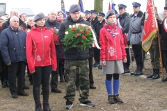 Burmistrz Węgrowa Paweł Marchela w swoim przemówieniu zwrócił uwagę jak ważne jest kultywowanie pamięci o wielkim dla Węgrowa wydarzeniu – zrywie powstańczym okupionym krwią. Podkreślał, że gdyby nie było tego zrywu z 1863 r. trudno byłoby mówić o roku 1918. – „156 lat temu powstańcy wychodzili po mszy na bój, teraz my po mszy przychodzimy tutaj.” Przypominał, że zawsze byli tu obecni harcerze i dziś moment złożenia przysięgi harcerskiej potwierdza swoją pamięć o wydarzeniach sprzed 156 lat oraz o tych, którzy oddali swoje życie za Ojczyznę. Kilka słów na temat tej rocznicy powiedzieli również starosta węgrowski Ewa Besztak i radny rady Powiatu Węgrowskiego Jarosław Grenda. Następnie swoimi przemyśleniami podzielił się ks. biskup Tadeusz Pikus oraz odmówił modlitwę za poległych Powstańców. Wszystkie delegacje na czele z przedstawicielem kombatantów Światowego Związku Żołnierzy Armii Krajowej złożyły kwiaty i wieńce.