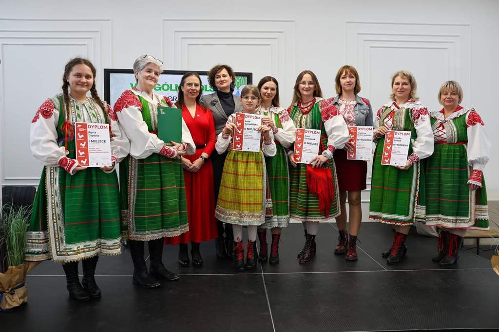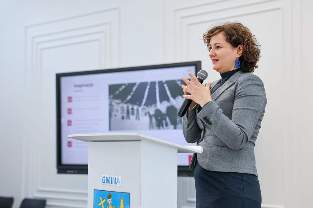 Karolina Kolbuszewska z Muzeum Dom Rodziny Pileckich w Ostrowi Mazowieckiej, która omówiła wyniki przeprowadzonego wcześniej konkursu pt. „Wstęga, koło, gwiazda, zielko – białokurpiowskie dziełko”.