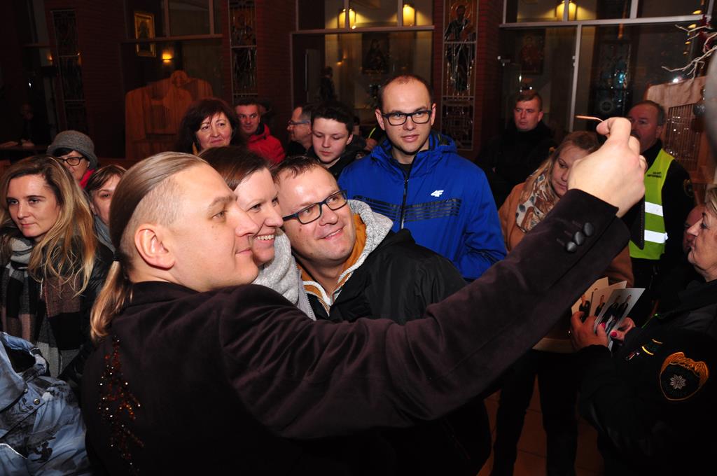 Paweł i Łukasz Golcowie na koncert do Wyszkowa zabrali swoje rodziny. Oczywiście cały czas koncertuje wraz z nimi skrzypaczka Edyta Golec, która w trakcie wyszkowskiego koncertu wykonała kilka kolęd, ale bardzo ciepło została także przyjęta Maja – córka Pawła Golca. Zaśpiewała pięknie wraz z nimi dwa utwory. Podobało się również publiczności, gdy Łukasz Golec opowiadał o kolędach i pastorałkach, które prezentowali, dzielił się informacjami na temat zespołu tworząc w ten sposób atmosferę bliskości z widzami. Bracia pozdrawiali ze sceny m.in. swoich przyjaciół z Wyszkowa, z którymi znają się już 18 lat i w dniu koncertu zasiedli na widowni. Na koniec zaprosili na scenę ks. proboszcza Romana Karasia i burmistrza Grzegorza Nowosielskiego, dziękując za zaproszenie do Wyszkowa. Nie obyło sie bez bisu, przy którym widzowie na stojąco gorąco oklaskiwali muzyków jednocześnie śpiewając wraz z zespołem kolędę. Po koncercie był czas na autografy i pozowanie wraz z członkami zespołu i braćmi Golcami do wspólnych zdjęć (sami wykonywali selfie).