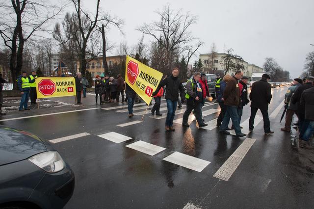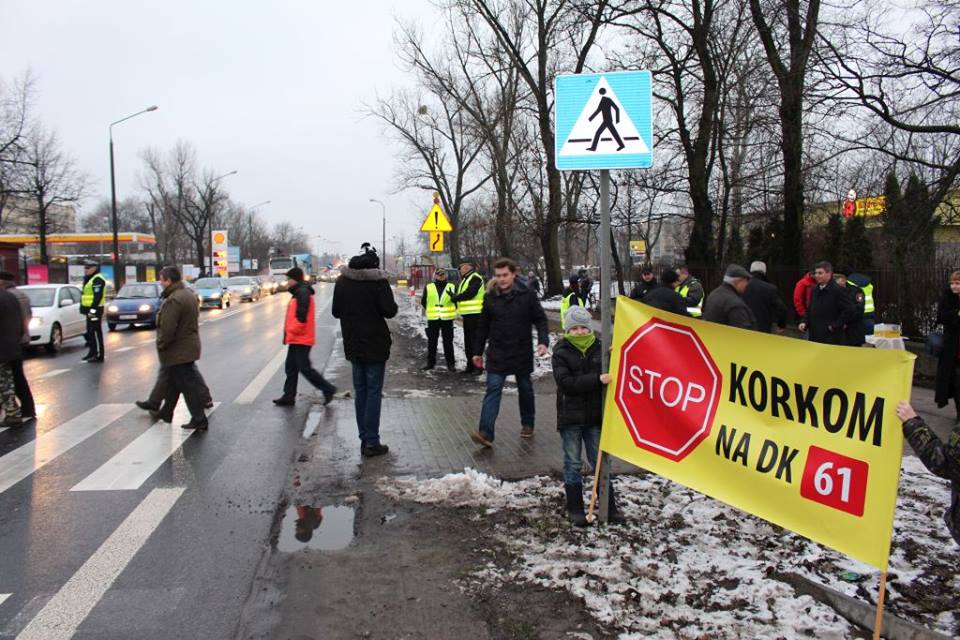 Razem działają władze miasta i powiatu wespół z mieszkańcami, stowarzyszeniami, a także kościołem. Przykład ostatnich strajków w górnictwie dał lokalnej społeczności jednoznaczne wskazanie: jak sobie nie wystrajkujesz od władz, to miał nie będziesz. W Legionowie strajku na razie nie ma. Jest za to masowa akcja zbierania podpisów w czasie trwających do końca miesiąca tzw. konsultacji, prowadzonych przez Ministerstwo Infrastruktury i Rozwoju w sprawie projektu Programu Budowy Dróg Krajowych na lata 2014-2023. W tej chwili dk61 nie ma nawet na liście rezerwowej. I wszyscy w Legionowie chcą to zmienić. Do tej pory miasto zebrało już ponad 1,5 tys. podpisów w tej sprawie. Podpisy zbiera też Starostwo, Spółdzielnia Mieszkaniowa Lokatorsko-Własnościowa i parafie. Problem regularnych korków na wiadukcie i ulicy Zegrzyńskiej dotyka nie tylko mieszkańców Legionowa i powiatu, ale także kierowców zmierzających nad Jezioro Zegrzyńskie czy na Mazury. Bardzo aktywni w tej sprawie są mieszkańcy os. Piaski, gdzie inicjatorem akcji jest Społeczna Rada Wspólnot Mieszkaniowych Osiedla, której przewodzi Cezary Usik. W miniony piątek, w godzinach szczytu zorganizowano tzw. zgromadzenie publiczne na wysokości przejścia dla pieszych tuż za wiaduktem, gdzie zaczyna się wąskie gardło na drodze krajowej 61. Akcję trwającą blisko godzinę zabezpieczały siły porządkowe: Policja i Straż Miejska. Przybyły władze miasta i powiatu. Akcja polegała na zbieraniu podpisów i trzykrotnym blokowaniu przejścia dla pieszych, podczas którego kilkadziesiąt osób z transparentami przekraczało ulicę skutecznie blokując ruch. Podpisy zbierano także w sobotę, w pobliskim centrum handlowym i na miejskim targowisku. Zdaniem organizatorów, jeśli przebudowa DK61 nie znajdzie się w Programie Budowy Dróg Krajowych, to mieszkańcy Legionowa są gotowi na dobre sparaliżować ruch na tej ruchliwej trasie.