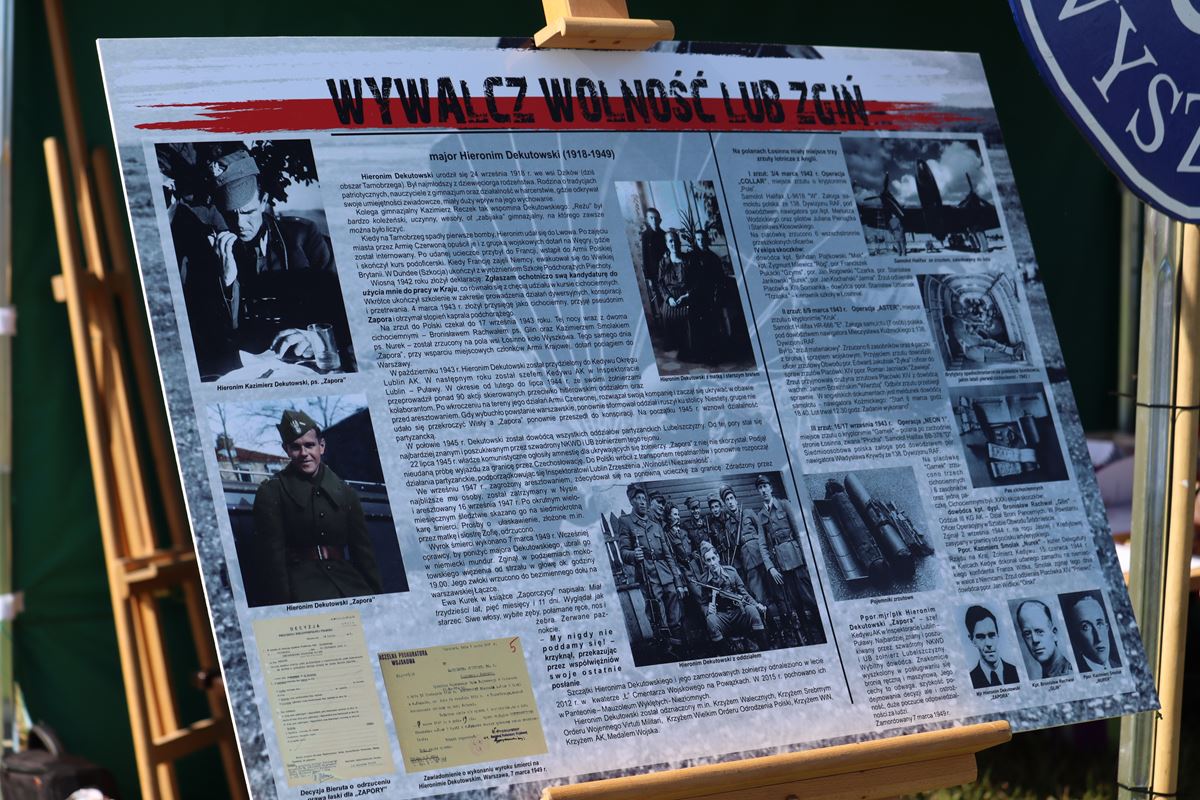 Na temat walki z niemieckim i sowieckim okupantem oraz akcji Cichociemnych oraz zrzutu z września 1943 roku, w którym uczestniczył mjr Heronim Dekutowski ps. „Zapora”, przypominali w swoich wypowiedziach organizatorzy i goście. Zebranych przywitali: Mirosław Widlicki prezes Zarządu Okręgu Warszawa Wschód Światowego Związku Żołnierzy AK oraz Teresa Czajkowska członek ŚZŻ AK Obwód „Rajski Ptak” Koło w Wyszkowie, córka żołnierza AK Mariana Czajkowskiego, członek Zarządu Powiatu Wyszkowskiego. Marian Czajkowski ps. „Dym” należał do powojennego podziemia antykomunistycznego – Narodowego Zjednoczenia Wojskowego, był członkiem oddziału Jana Kmiołka ps. „Wir” i więźniem katowni UB.