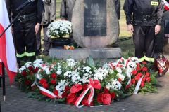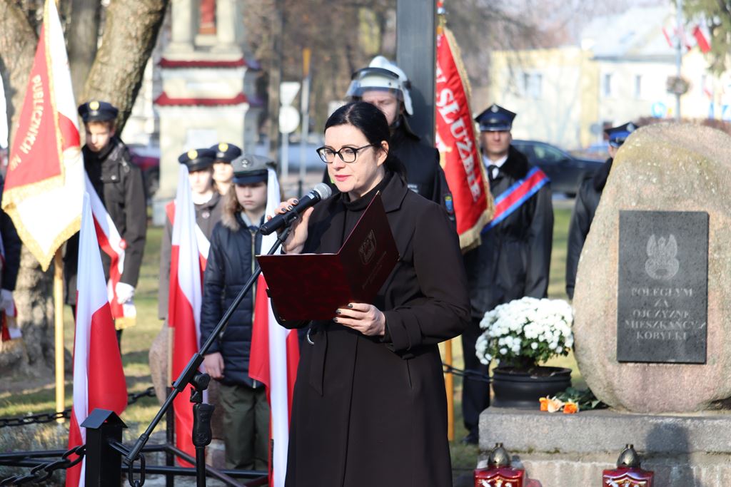 W imieniu władz samorządowych i mieszkańców, kwiaty pod Pomnikiem Poległych za Ojczyznę złożyła burmistrz Edyta Zbieć w towarzystwie wiceburmistrz Katarzyny Rostek, sekretarz Małgorzaty Murawskiej oraz Pań Dyrektor: Agnieszki Kacprzak i Sylwii Carzyńskiej.