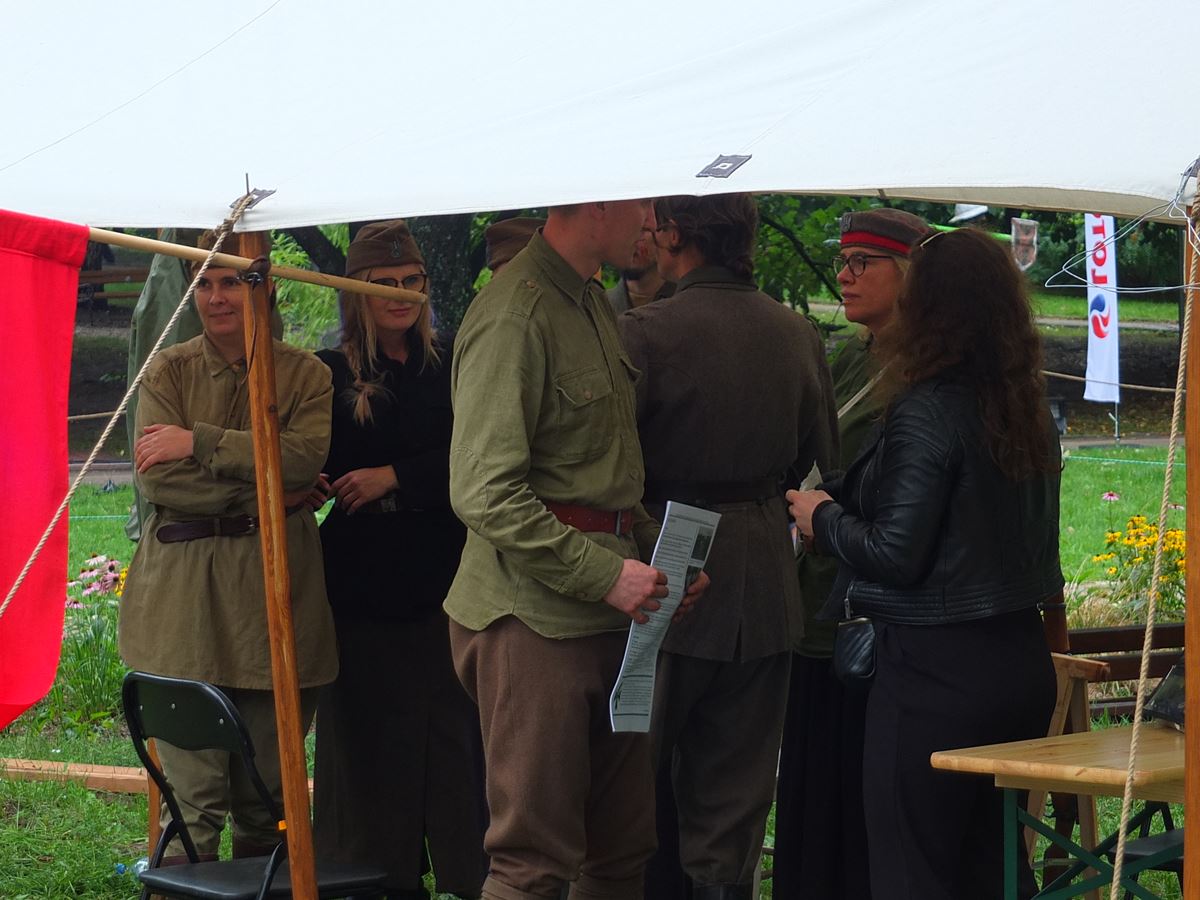Ponadto, zorganizowano warsztaty w obozach: polskim i sowieckim. Chętni mogli wziąć udział w szyciu kokard dla ochotników albo otrzymać historyczną gazetkę „jednodniówkę” nt. Bitwy Warszawskiej.