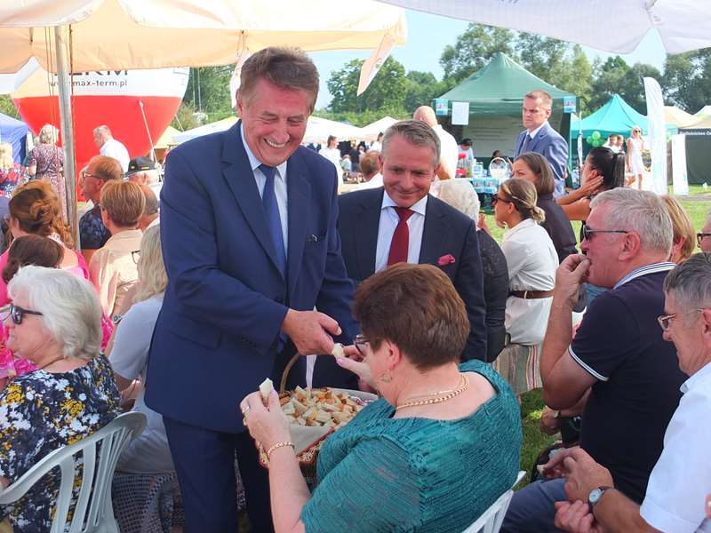 Następnie głos zabrali goście Dożynek: poseł Henryk Kowalczyk, Anna Osińska (odczytała list od ministra rolnictwa), radny Sejmiku Rafał Kowalczyk i kierownik oddziału ostrowskiej Agencji Restrukturyzacji i Modernizacji Rolnictwa Justyna Kesler-Zajączkowska. Przekazano również listy gratulacyjne na ręce gospodarzy dożynek od poseł Marii Koc, posła Krzysztofa Tchórzewskiego, posła Czesława Mroczka, wojewody Mariusza Frankowskiego i marszałka Adama Struzika. Należy również pogratulować wyjątkowo pięknego występu Zespołowi Pieśni i Tańca OBEREK z Wyszkowa, który zaprezentował piosenki i przyśpiewki oraz tańce ludowe naszego regionu.