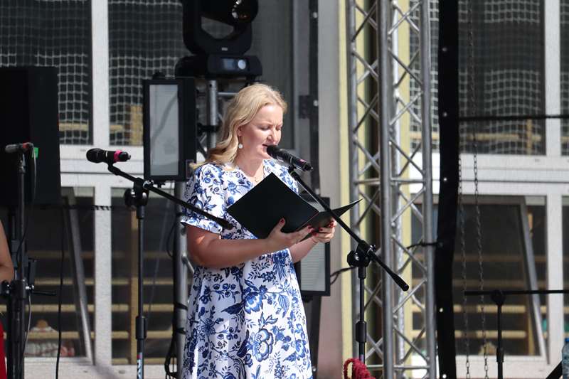 Starosta Jerzy Bauer podziękował wójtowi i radnym za zaangażowanie w przygotowanie dożynek. Następnie podkreślił, że świętujemy zbiory, ale też trud rolników.