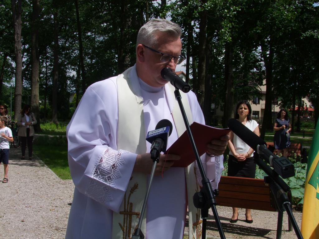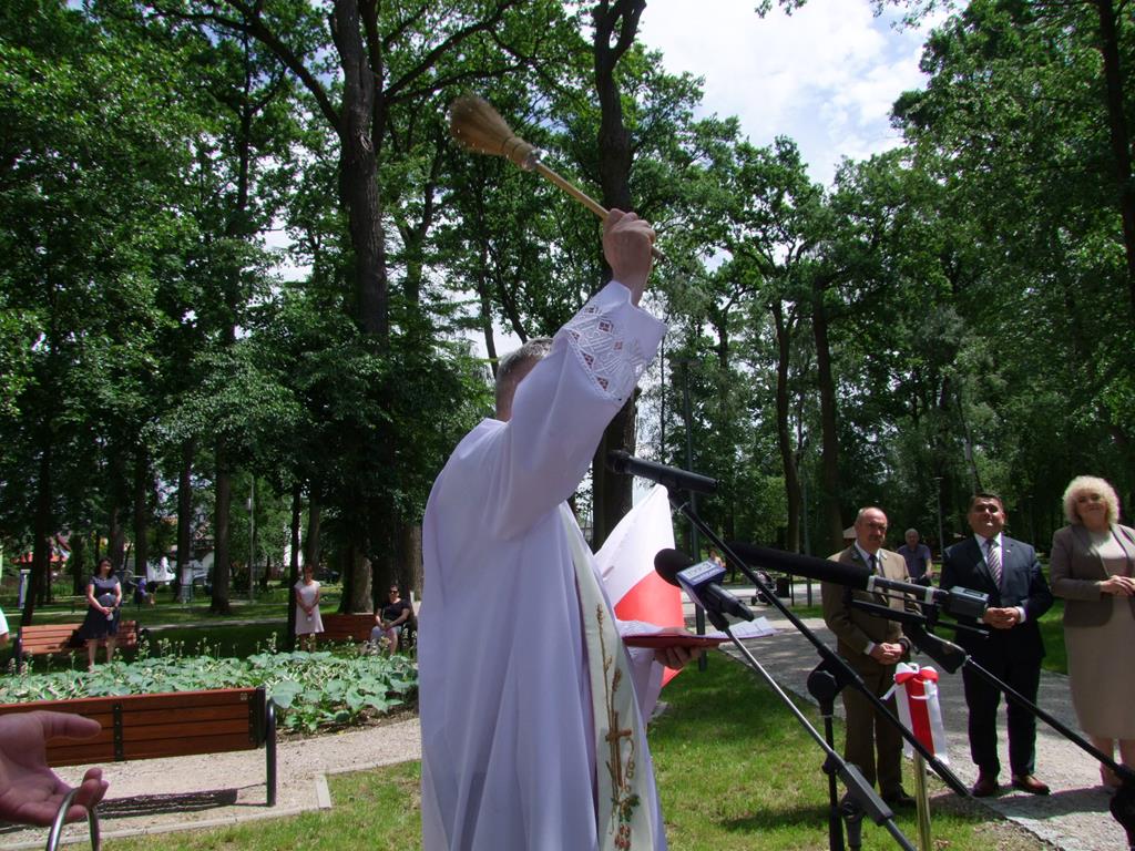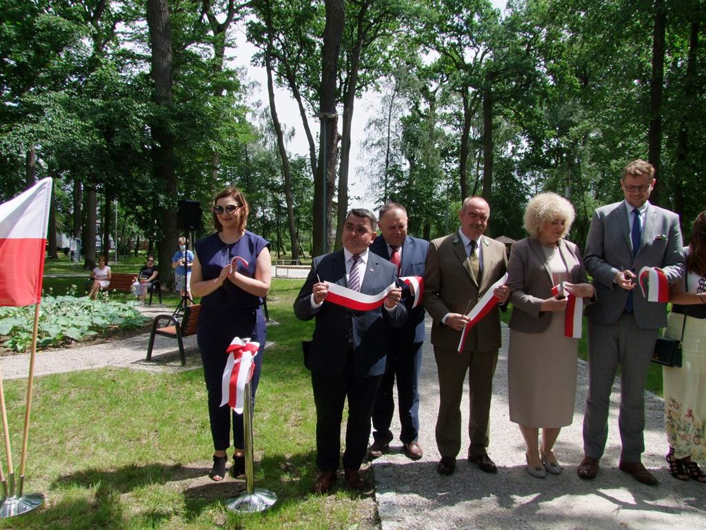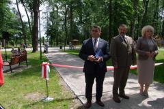 Po powitaniu zaproszonych Gości przez Burmistrza Łochowa Roberta Gołaszewskiego, dokonano symbolicznego otwarcia poprzez przecięcie wstęgi, następnie proboszcz parafii w Łochowie ks. kan. Roman Szmurło poświęcił park.