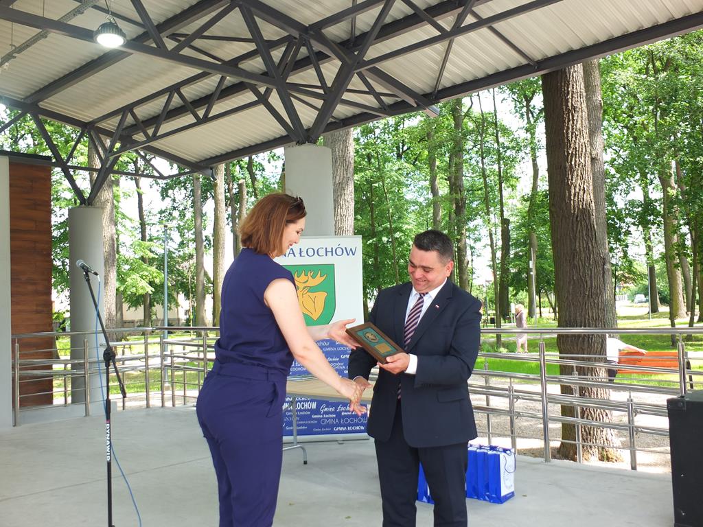 Burmistrz Łochowa wręczył w podziękowaniu za pomoc przy realizacji projektu: Zagospodarowanie terenów zielonych Łochowa poprzez utworzenie parku miejskiego „Dębinka” pamiątkowe medale 50-lecia Miasta Łochowa. Medale otrzymały m.in. Walentyna Świlińska-Urbat – wykonawca projektu, Arletta Pasicka – projektant parku i Mariola Panasewicz – inspektor ds. koordynowania i rozliczania projektów z Funduszy Europejskich. Odbiorcami tych szczególnych podziękowań byli również: dyrektor Marek Roman, Dominik Bąk prezes NFOŚiGW, Arkadiusz Siembida dyrektor RDOŚ w Warszawie i Andrzej Konieczny dyrektor Generalny Lasów Państwowych. Szczególne podziękowania odebrała Pani senator Maria Koc i Jerzy Derlicki, a statuetki I. J. Paderewskiego, miniatury pomnika w Łochowie, z rąk burmistrza otrzymali minister Michał Woś i dyrektor Bogusław Piątek. Na koniec uroczystości w Łochowie wystąpił chór międzypokoleniowy ŁOCHO – HO! pod kierownictwem Roberta Lipki.