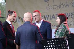 Dożynki powiatowe tradycyjnie rozpoczęto od mszy Św., którą odprawił JE ks. biskup senior Antoni Dydycz w kościele pw. Niepokalanego Serca NMP w Łochowie. Następnie delegacje dożynkowe prowadzone prze kapele i młodzież z zespołów ludowych w pięknym, barwnym korowodzie przeszły na teren Folwarku w Łochowie. Obchody dożynkowe rozpoczęto od Hymnu Narodowego, który odśpiewał Mariusz Orzełowski – Dyrektor Marketingu Arche. Po powitaniach obecni na scenie gospodarze obchodów: wicestarosta Marek Renik oraz burmistrz Łochowa Robert Gołaszewski w obecności wójtów i burmistrzów powiatu odebrali chleb dożynkowy od starostów dożynkowych Państwa Emilii i Zenona Szczęsnych ze wsi Karczewizna, hodowców koni i bydła, uprawiających zboże i kukurydzę i gospodarujących na 36 ha gospodarstwie. Po podzieleniu się chlebem z wójtami i burmistrzami z terenu powiatu węgrowskiego wicestarosta Marek Renik podziękował wójtom i burmistrzom za współpracę oraz wręczył pamiątkowe pióra. Został również odczytany przez Sławomira Ryszawę przewodniczącego Rady Miejskiej w Łochowie list Prezydenta RP Andrzeja Dudy skierowany do uczestników dożynek. List od Premiera Rządu RP Mateusza Morawieckiego odczytała Anna Kaszuba Kierownik Delegatury Mazowieckiego Urzędu Wojewódzkiego. Gospodarze obchodów powitali zaproszonych gości oraz wręczyli prezesowi Grochowskiemu dzwonek z Ludwisarni Braci Kruszewskich w podziękowaniu za możliwość gościny w jego Pałacu i Folwarku. Życzenia i kilka słów skierowali do zebranych goście: parlamentarzyści – senator Maria Koc, poseł Maciej Górski, radna Sejmiku Województwa Mazowieckiego Joanna Bala i inni. W następnym punkcie programu po odczytaniu laudacji na temat nominowanych zostały wręczone odznaczenia „Zasłużony dla rolnictwa”, otrzymali je: Mirosław Barbachowski (rolnik z Gminy Łochów), Krzysztof Koroś (właściciel gabinetu weterynaryjnego z Gminy Sadowne), Michał Ożarowski (rolnik z Gminy Stoczek), Grzegorz Matusik (rolnik z Gminy Miedzna) Marcin Rusjan (rolnik z Gminy Miedzna), Sławomir Wrzosek (rolnik z Gminy Miedzna), Piotr Wojtyra (rolnik z Węgrowa), Paweł Gago (rolnik z Węgrowa), Paweł Ratyński (rolnik z Gminy Grębków), Sławomir Lipka (rolnik z Gminy Korytnica), Paweł Gago (rolnik z Gminy Korytnica). Odznaczenia wręczyła senator Maria Koc wraz z Posłem na Sejm RP Maciejem Górskim, a wiceprzewodnicząca Rady Powiatu Węgrowskiego Brygida Górniaczyk wręczyła każdemu z nagrodzonych słoneczniki.