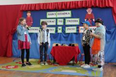 Na wstępie uroczystości dyrektor szkoły Pan Arkadiusz Przeździecki przywitał przybyłych gości, złożył im serdeczne życzenia, a następnie oddał głos najmłodszym uczniom, którzy pod kierunkiem swoich wychowawców przygotowali wzruszający program artystyczny składający się z wierszy i piosenek z lat młodości naszych zacnych gości. Ponadto zaproszeni goście obejrzeli humorystyczne scenki związane tematycznie z tymże świętem i pokaz tańca ,,Czekolada”. Babcie i Dziadkowie ze wzruszeniem odbierali czułe słowa kierowane pod ich adresem, ukradkiem ocierali łzy, ale również często wybuchali gromkim śmiechem.