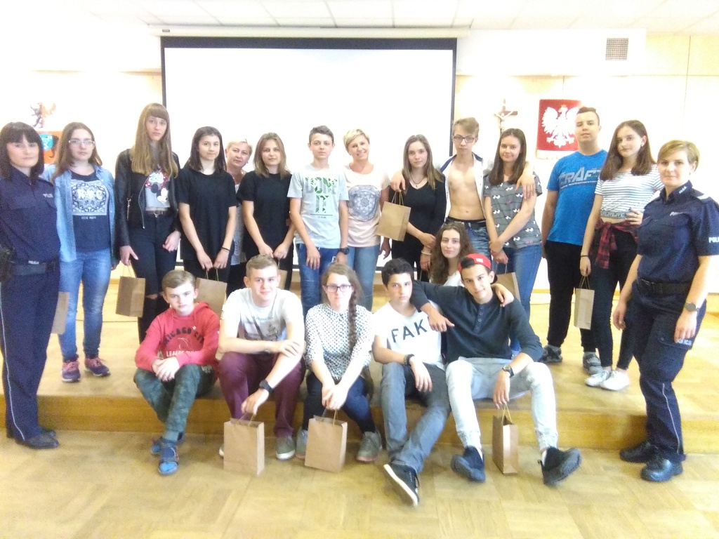 Uczniowie z grupy teatralnej otrzymali drobne upominki ufundowane przez M/GKRPA w Łochowie oraz KPP w Węgrowie.