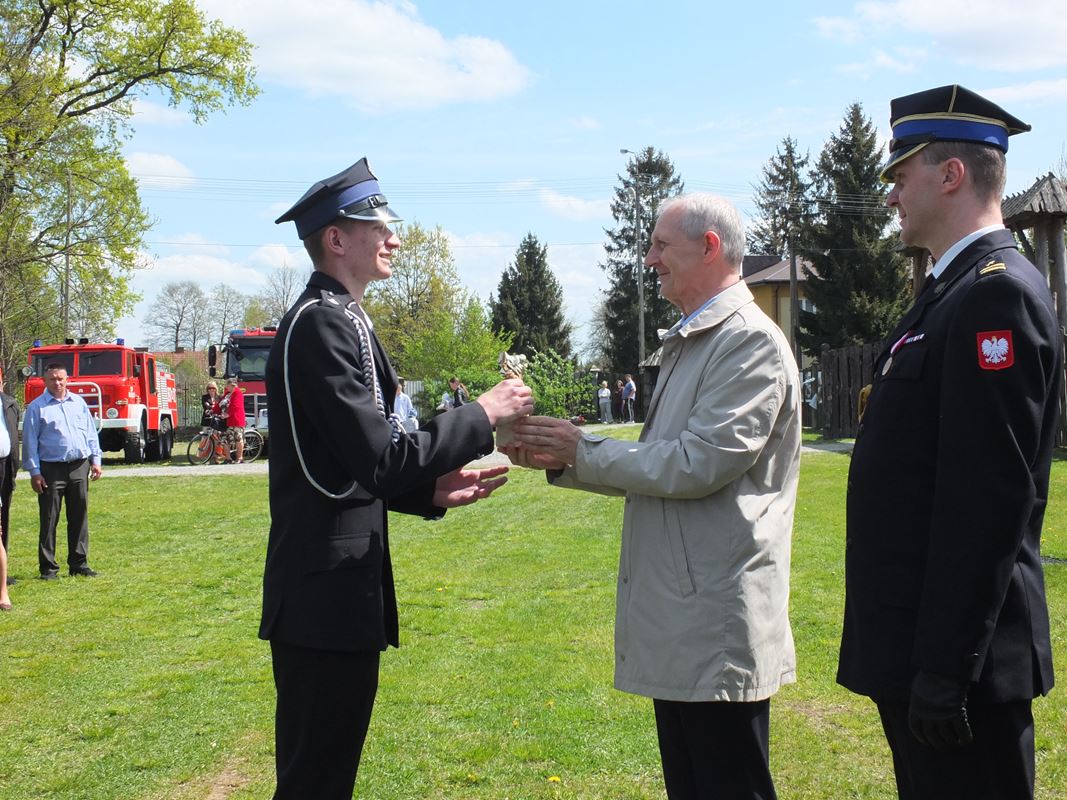4. Odznaką „Strażak Wzorowy” odznaczony został Jerzy Lasota z OSP Tuchlin za odwagę, wzorową postawę i konsekwentne działanie, które pozwoliło uratować ludzkie życie”.