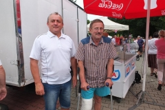 fot30Gmina Wyszków po raz szósty zaprosiła mieszkańców i turystów na Festiwal Miodu i Chleba w Kamieńczyku. W niedzielę, 6 sierpnia 2017 r. Kamieńczyk rozbrzmiewał gwarem, muzyką i radością. Tłumy chętnych przemieszczały się pomiędzy stoiskami i straganami szukając smacznych, zdrowych, ekologicznych wyrobów przygotowanych według tradycyjnych receptur. Nie omijano też pysznej smażonej ryby serwowanej przez Bar Popularny z Wyszkowa. Oblegane były również stoiska gastronomiczne z domowymi potrawami: pierogami i bigosem oraz Kuźnia Kurpiowska z Pniewa, która przygotowała potrawy tradycyjne m.in. fafernuchy, obwarzanki, chleb ze smalcem, kotlety z kaszy gryczanej, kartoflaki i sodziaki w ciągu kilkudziesięciu minut została wymieciona do czysta. Tak bardzo uczestnikom festiwalu smakowało! Dopisali w tym roku okoliczni pszczelarze. Swoje miody oferowali m.in.: „Pasieka pod Lasem” Lecha Bielińskiego, pasieka Bogdana Borzymka z Kamieńczyka, pasieka „Pszczoły i My” z Wysych, pasieka „Niedźwiedź” oraz inni członkowie Powiatowego Koła Pszczelarzy z Wyszkowa. Zapraszano na degustację miodu na chlebie i kupowania zakwasu chlebowego z beczułki, czy Piwa Kozicowego. Wielkie kolejki stały do stoisk z chlebem i wypiekami: Piekarni Romanowski, PSS „Społem” i innych. Wielu chętnych gromadził pokaz tradycyjnego wypieku chleba. A jeszcze kusiły stoiska z serami np. Kurpie Białe „Zasmakuj w tradycji”, Sery Korycińskie, czy pysze wyroby wędliniarskie takie jak Wędliny z Podlasia. Nie zabrakło innych atrakcyjnych wyrobów: konfitur cytrynowych z Centrum Ekologicznego, lemoniady z kwiatu czarnego bzu, syropu ze skrzypu, soku malinowego, czy przypraw naturalnych. Były stoiska z rękodziełem, obrazami i kwiatami z drewna. Wielkim powodzeniem cieszyło się stanowisko promocyjne Gminy Wyszków, gdzie zainteresowani mogli otrzymać kartki promujące gminę (nowość), mapki, materiały, broszurki i informacje. Na najmłodszych czekały darmowe place zabaw i dmuchańce, lody i obwarzanki. Były też pokaz wozu strażackiego i jego wyposażenia przygotowanego przez OSP Kamieńczyk.