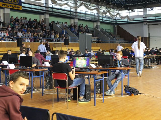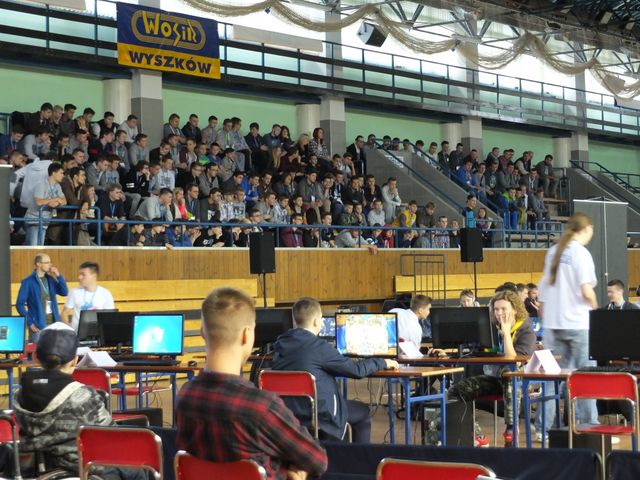Ponad 170 gra- czy z całej Polski zmierzyło się w dwóch rozgrywkach: League of Legends (30 zespołów po 5 graczy + 1 rezerwowy) oraz He- arthstone: Heroes of Warcraft (24 zawodników). Kibice dopisali (wejście na trybu- ny było nieodpłatne) i zaskakująco wiele osób obserwowało zmagania za- wodników i drużyn. Podczas zmagań e-sports w Wyszkowie wykorzysta- nych zostanie ponad 70 komputerów oraz 2 ekrany projekcyjne ustawione w stronę trybun. Przygotowanie stano- wisk, montaż sieci, konfiguracja kom- puterów, instalacja gry trwała blisko 7 godzin. Zużyto ponad 600 metrów ka- bla sieciowego. Nad rozkładaniem, za- rabianiem kabli ethernetowych praco- wało w sumie 9 osób (5 pracowników firmy FUZ, 4 pracowników Urzędu Miejskiego w Wyszkowie, w tym 3 informatyków). W piątek 16 październi- ka w przygotowaniu areny gier wzięło w sumie udział 15 osób. Rywalizacja z obu stref gier trans- mitowana była na żywo i komento- wana przez spikerów (3 minutowe opóźnienie w stosunku do gry w czasie rzeczywistym). Komentatorami zawo- dów byli: Maciej Mirecki, Krzysztof Kołodziej (Warszawa). Rozgrywki LoL przeprowadzone zostaną systemem 5vs5 (w drużynie 5 zawodników głównych oraz jeden rezer-wowy).