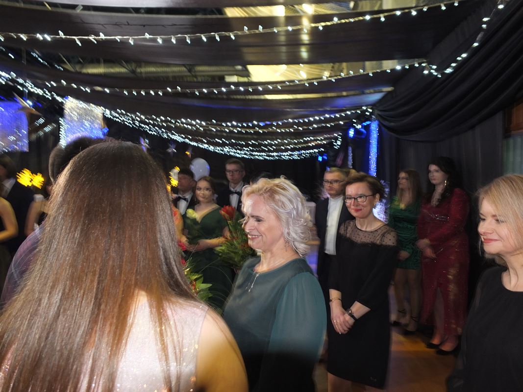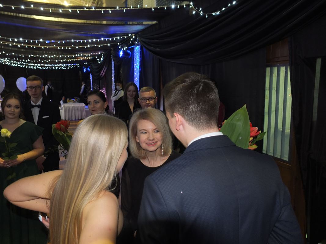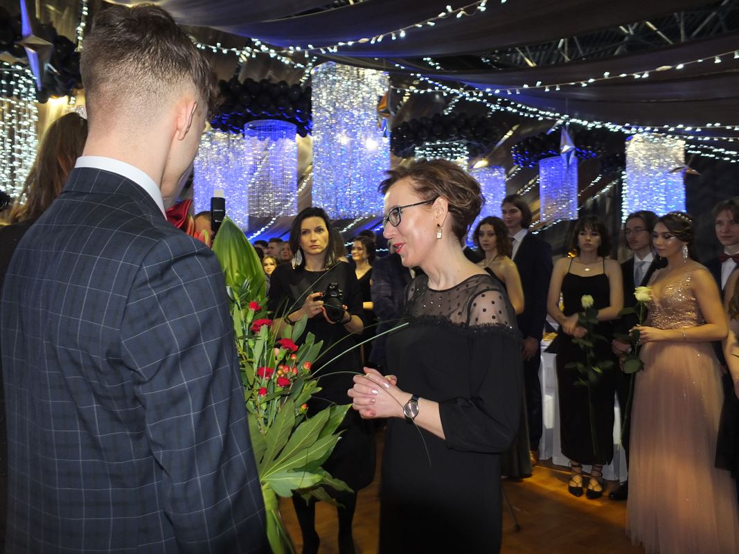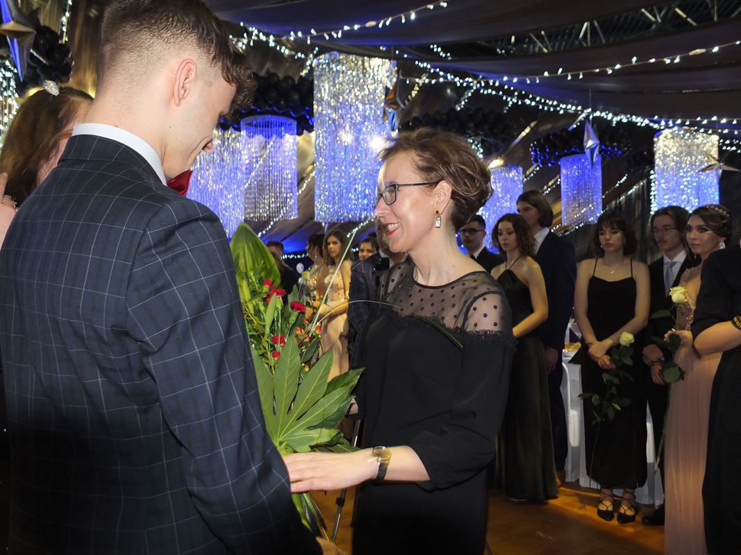 Wiele też było podziękowań. Młodzież dziękowała swoim wychowawcom klas maturalnych i kwiaty otrzymali: Iwona Żelazna-Łysik, Adam Czechowski, Bożena Deluga-Jachna, Anna Mróz, Agnieszka Bajkowska. Dziękowano też gronu pedagogicznemu, rodzicom i przedstawicielom komitetu studniówkowego: Monice Kwiatkowskiej, Ewie Sosnowskiej, Monice Ciskowskiej, Marzenie Wojewodzie-Kowalkowskiej, Szymonowi Depcie i Zbigniewowi Wyszyńskiemu. Pani dyrektor dziękowała również gronu pedagogicznemu, ale też maturzystom działającym w samorządzie szkolnym: Antoniemu Depcie, Oliwii Kaczmarskiej, Nikoli Mikiewicz i Janowi Książkowi. W imieniu swoich koleżanek, kolegów oraz dyrekcji – staroście podziękował Jan Książek.