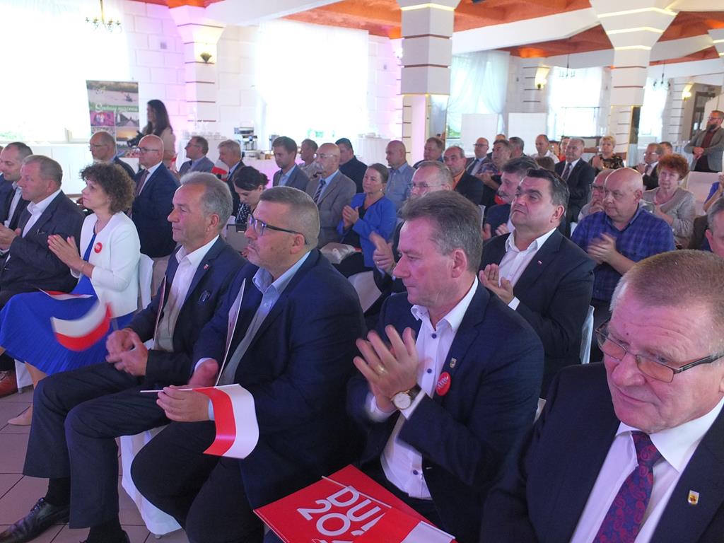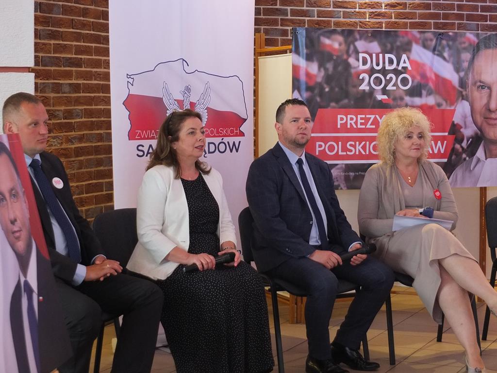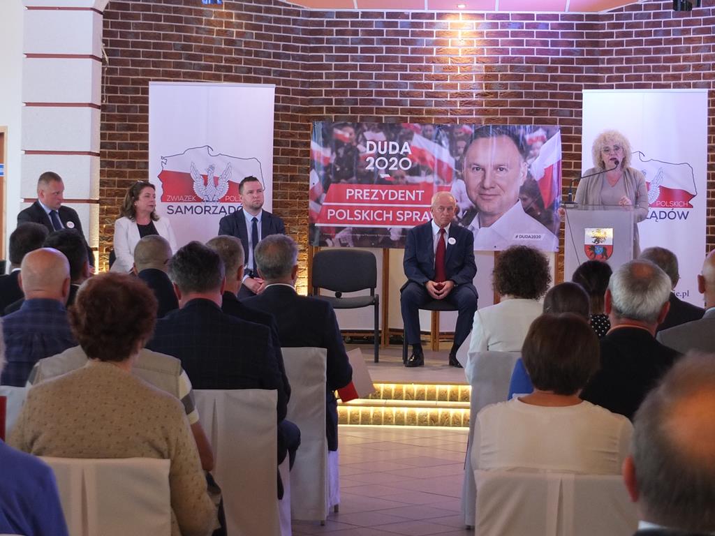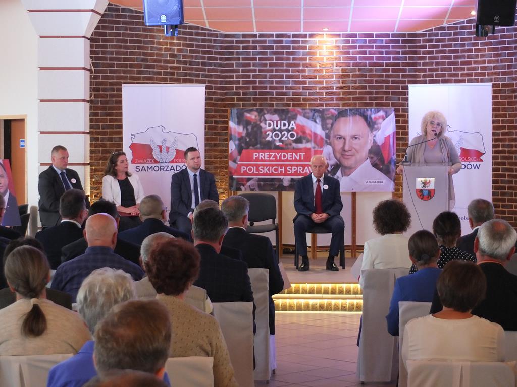 Starosta węgrowski Ewa Besztak podkreślała jak wiele środków trafiło do powiatu – 382 mln zł z różnych programów, 500+, na drogi, oświatę, wsparcie przedsiębiorców, itp. Jednak wszystkie zmiany zależą od tego, co zadzieje się w przyszłości – mówiła mając na myśli obecne wybory. Bardziej szczegółowo o kierowanych środkach w ciągu 5 ubiegłych lat rządów oraz o programach finansowanych z budżetu państwa przedstawiała senator Maria Koc: „Te wszystkie środki są nam potrzebne. Mamy tworzyć, budować i pomnażać polski potencjał”. Powiat węgrowski w okresie 2 lat otrzymał 38 mln zł wsparcia na modernizację dróg gminnych i powiatowych. Działania Związku przybliżał prezes ZSP Adam Ciszkowski, związku, który tworzy 100 samorządów w tym 20 powiatów i 70 gmin. „Nie trzeba państwa przekonywać, że my z Prezydentem staramy się pracować na rzecz wsparcia Polski lokalnej… Chcemy lepsze perspektywy otwierać dla wszystkich, nie tylko w wielkich miastach i stąd nasze programy, dziesiątki milionów złotych kierowane do samorządów” – podkreślał wicepremier Jacek Sasin. Wprowadzenie zasady zrównoważonego rozwoju Polski i utrzymanie wszystkich programów zależy od dobrej współpracy, a to gwarantuje tylko Andrzej Duda, więc w wypowiedziach gospodarzy spotkania oraz gości dominowało przekonanie, że samorządowcy powinni, jako liderzy swoich środowisk przekonywać społeczności do udziału w II turze wyborów i głosowania na Andrzeja Dudę. Po bardzo merytorycznej dyskusji podkreślanej wieloma danymi dotyczącymi wpływu programów i polityki Prezydenta oraz rządu ze szczególnym uwzględnieniem powiatu węgrowskiego, zebrani złożyli podpisy pod specjalnie przygotowaną planszą z poparciem dla Prezydenta RP Andrzeja Dudy.