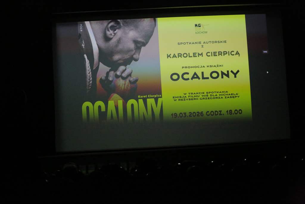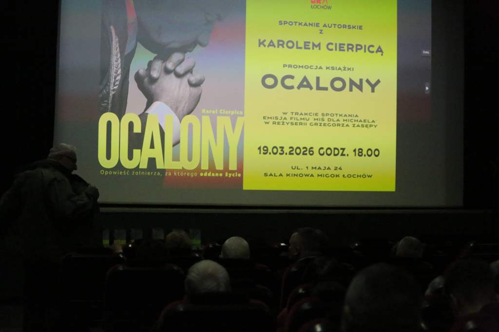 19.03.2026 r. w sali kinowo-widowiskowej Miejskiego i Gminnego Ośrodka Kultury w Łochowie odbyło się wyjątkowe spotkanie autorskie połączone z promocją książki Karola Cierpicy pt. „Ocalony. Opowieść żołnierza, za którego oddano życie”.