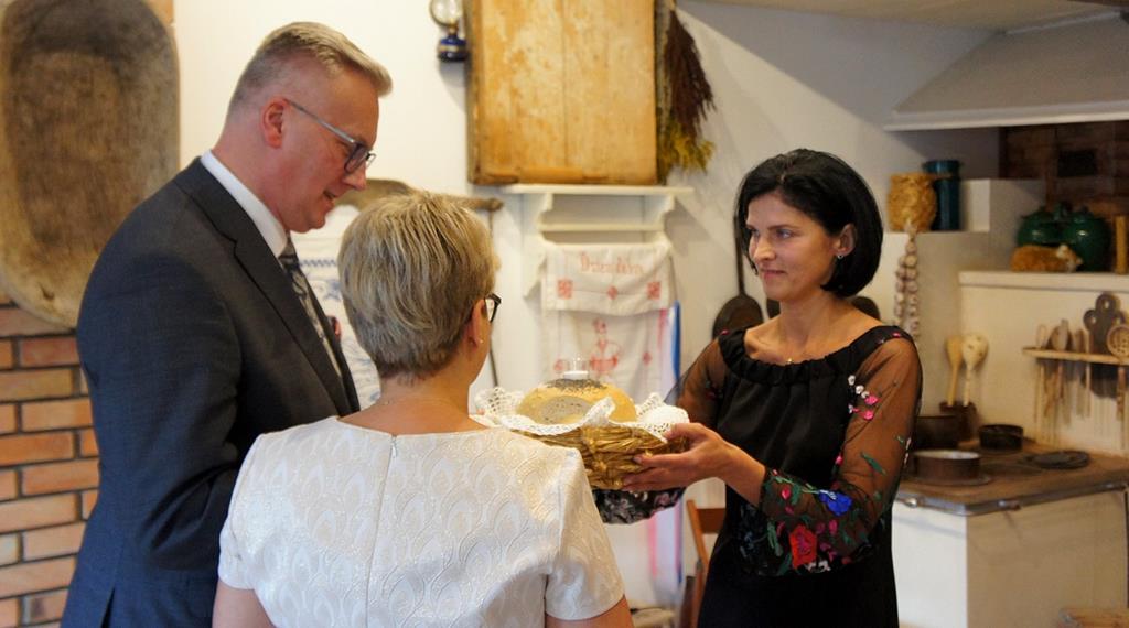 Ceremonię otwarcia dopełniono staropolskim obrzędem poczęstunku chlebem i solą, a chwilę później przyszedł czas na artystyczną część programu. Zainstalowana w dwóch wnękach ekspozycja stała się świetną scenografią dla międzypokoleniowego występu Zespołu Folklorystycznego „Podsybka Kurpiowska” oraz Koła Gospodyń Wiejskich z Łęgu Przedmiejskiego.