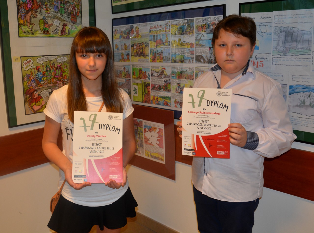 Na konkurs wpłynęło ogółem 370 prac, w tym 175 prac od uczniów szkół podstawowych. Komisja konkursowa w składzie m.in.: p. Sławomira Zajączkowskiego, scenarzysty i autora komiksów, pracowników IPN, Muzeum Historii Polski, Narodowego Centrum Kultury, dokonało oceny końcowej prac i przyznało nagrody. Na 175 prac rywalizujących ze sobą w kategorii szkół podstawowych, zaszczytne I miejsce (ex aequo) zajęli uczniowie „Stalowej Jedynki”- Dorota Wardak, uczennica klasy V b, która stworzyła komiks pod wymownym tytułem „Kartki z pamiętnika Janka ochotnika. Radzymin 1920 rok”. (W swoim komiksie Dorota przedstawiła historię walk wojsk polskich z bolszewikami o Radzymin widzianą oczami młodego chłopaka, który zaciągnął się do Armii Ochotniczej) oraz Cezarego Świerczewskiego, ucznia klasy VI d, autora komiksu „ O Wojtku niedźwiedziu polskim żołnierzu”. (W komiksie tym Czarek w bardzo interesujący, a jednocześnie zabawny, sposób za pomocą ołówka i kredek przedstawił historię niedźwiedzia Wojtka walczącego w oddziałach II Korpusu pod dowództwem generała Władysława Andersa).