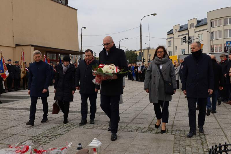 i S. Duboisa), gdzie przy eskorcie posterunku honorowego Garnizonu Ostrów Mazowiecka i pocztów sztandarowych odbyła się dalsza część uroczystości. Został odśpiewany Hymn Państwowy oraz nastąpiło złożenie kwiatów przez delegacje władz samorządowych pod pomnikiem. W uroczystości wzięli udział mieszkańcy Ostrowi Mazowieckiej, przedstawiciele samorządów, radni miejscy, funkcjonariusze służb mundurowych, nauczyciele, dyrektorzy instytucji publicznych, harcerze oraz reprezentacje szkół.
