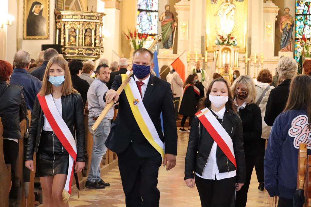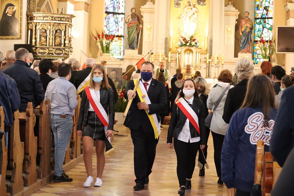 Przed kościołem ustawiły się uczestniczące w obchodach poczty sztandarowe i odbyła się scena przejazdu konnych oraz symbolicznego złożenia meldunku przez „Hubala” przygotowana przez grupę rekonstrukcyjną 201 – Ochotniczego Pułku Szwoleżerów. Po wejściu do kościoła ksiądz Andrzej Grzybowski przywitał gości w imieniu Starosty Powiatu Wyszkowskiego i Wójta Gminy Brańszczyk, a następnie została odprawiona Msza Święta. Dalsze części obchodów: część oficjalna oraz koncert pieśni patriotycznych, zaplanowano na placu obok kościoła przy Muralu, ale ze względu na pogodę zdecydowano o ich przeniesieniu do wnętrza kościoła. Uroczystość rozpoczęto Hymnem Polski, a następnie przywitano organizatorów. We wprowadzeniu Pani Monika przybliżyła postać i dzieje naszego bohatera: „Henryk Dobrzański pseudonim „Hubal” to postać niezwykła dla Poręby. Major kawalerii Wojska Polskiego wywodzący się po matce z arystokratycznego rodu, sportowiec uprawiający z sukcesami jeździectwo i – jak mówią niektórzy – ostatni polski „zagończyk” miał wraz ze swoim oddziałem 25 lub 26 września 1939 roku przybyć do parafii w Porębie. „Hubal” przeprawił się przez rzekę Bug zmierzając do Warszawy, by pomóc walczącym. Postawa „Hubala” oraz Jego żołnierzy przeszła do historii, jako symbol niezłomnej walki do końca. Stanowiła ona namacalny dowód, że „jeszcze Polska nie zginęła póki my żyjemy”.