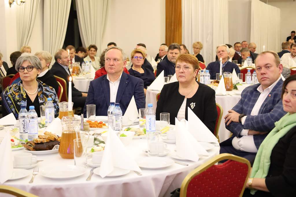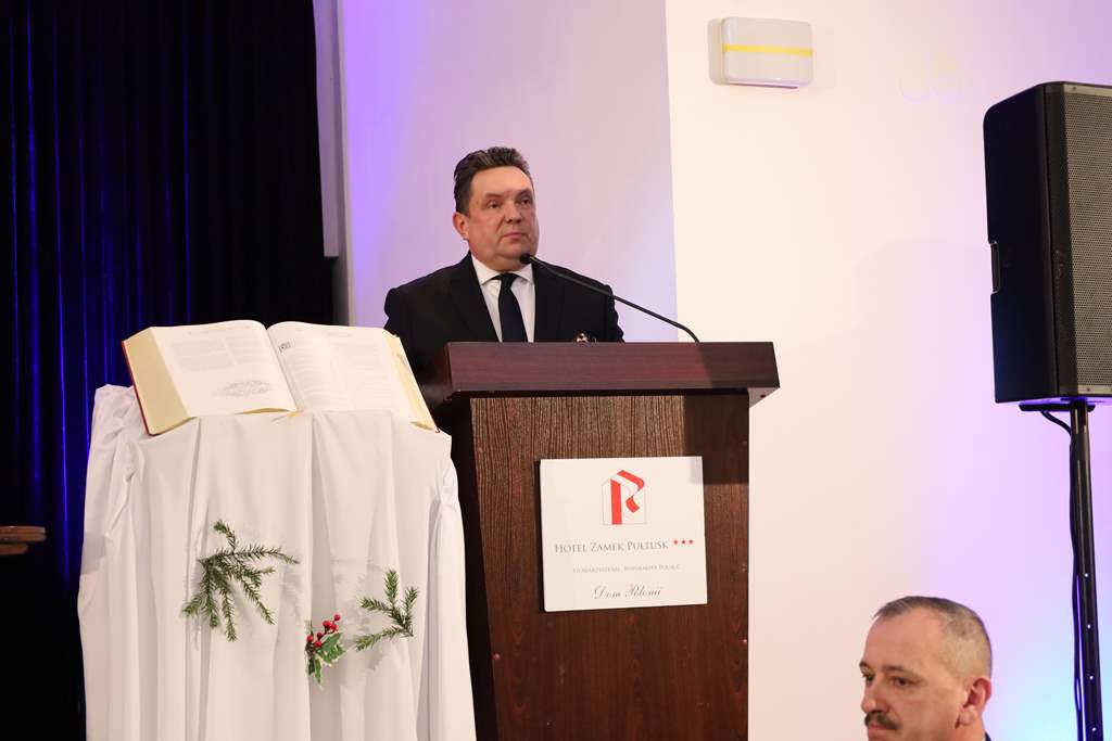 Fragment Ewangelii według św. Łukasza odczytał ksiądz kanonik Jarosław Arbat, proboszcz parafii św. Mateusza w Pułtusku. Duchowny dokonał poświęcenia opłatków, którymi – zgodnie z tradycją – uczestnicy spotkania podzielili się, składając sobie wzajemnie życzenia noworoczne w przyjaznej i ciepłej atmosferze.