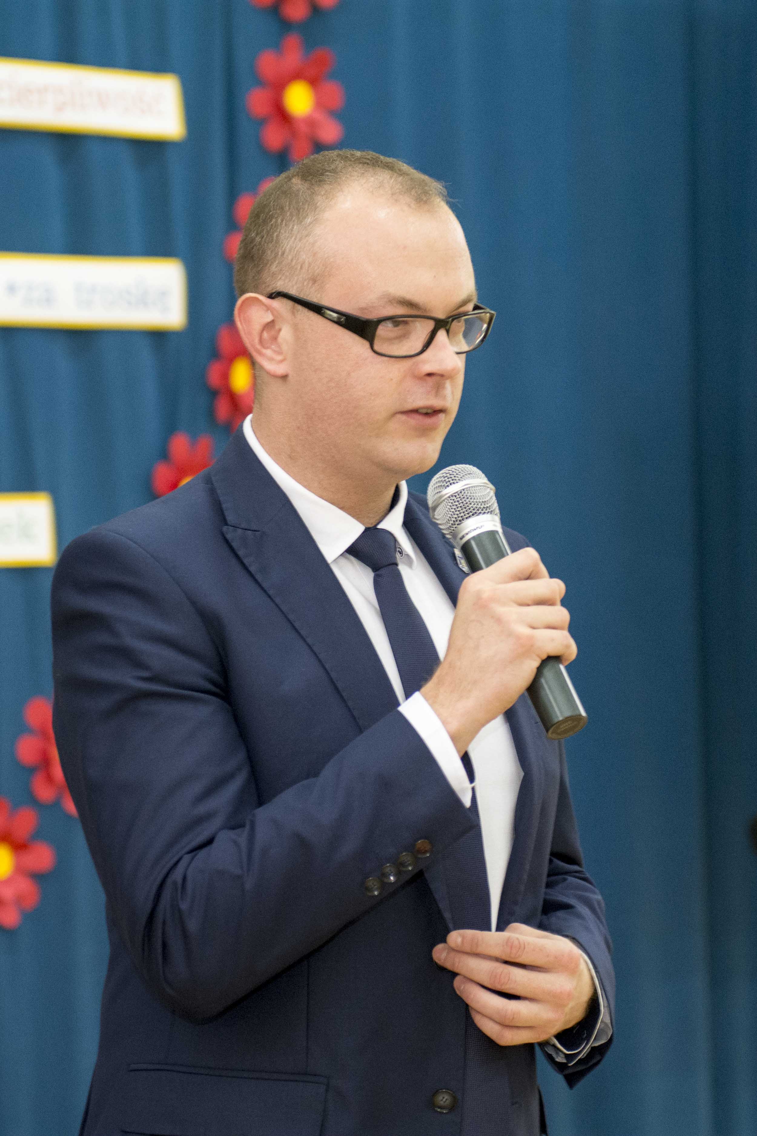 Na zakończenie oficjalnej części spotkania głos zabrał burmistrz Radzymina p. Krzysztof Chaciński, który podziękował wszystkim nauczycielom i pracownikom oświaty za ich pracę, a na ręce Pani Dyrektor złożył symboliczny bukiet kwiatów z życzeniami.