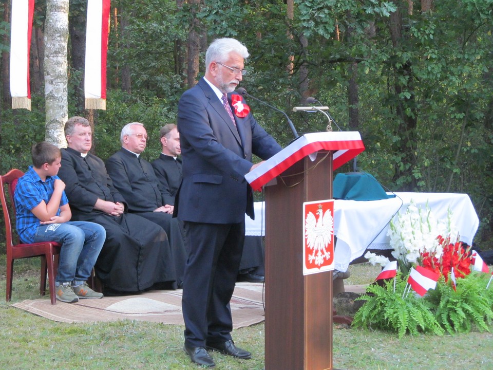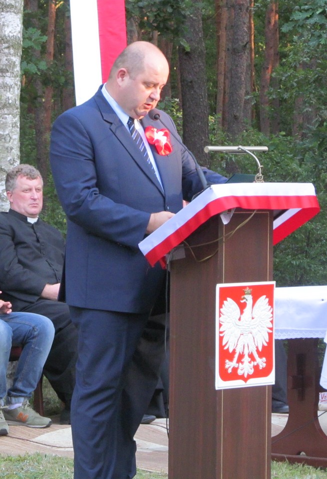 Po zakończeniu nabożeństwa i uroczystym wprowadzeniu Kompanii Honorowej WP oraz odegraniu hymnu państwowego głos zabrał wójt Nieporętu Sławomir Maciej Mazur, a następnie dyrektor Departamentu Rolnictwa i Rozwoju Obszarów Wiejskich Radosław Rybicki, który odczytał okolicznościowy list od Marszałka województwa mazowieckiego Adama Struzika.