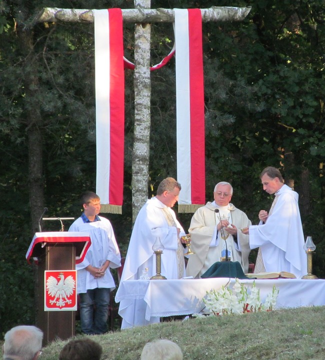Uroczystości rozpoczęły się punktualnie o godzinie 17-ej, kiedy to odprawiona została polowa Msza Święta, koncelebrowana przez księży Władysława Trojanowskiego, Tomasza Osiadacza i Sławomira Brajczewskiego.