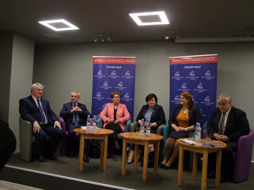 Spotkanie kandydatów z listy Prawa i Sprawiedliwości odbyło się w Bibliotece Miejsko – Gminnej 4 października. Trwało około dwóch godzin i chyba po raz pierwszy, aby rozmawiać z mieszkańcami Wyszkowa przybyło tak duże i znakomite grono przedstawicieli Prawa i Sprawiedliwości. Gościliśmy, bowiem: Marka Zagórskiego – ministra cyfryzacji, Teresę Wargocką – poseł na Sejm RP obecnej kadencji, Annę Kaszubę – kierownik Delegatury Mazowieckiego Urzędu Wojewódzkiego w Siedlcach, Ewę Runo – dyrektor SP Nr 4 w Wyszkowie, Jerzego Żukowskiego – starostę Powiatu Wyszkowskiego oraz Roberta Mamątowa – senatora RP. Wszystkie osoby w najbliższych wyborach kandydują na stanowisko posła na Sejm RP lub jak w przypadku Roberta Mamątowa do Senatu. Już niebawem, bo w najbliższą niedzielę, 13 października 2019 r., Polacy będą przy urnach wybierać swoich przedstawicieli, więc w całym kraju kandydaci Prawa i Sprawiedliwości rozmawiają z wyborcami przedstawiając swoją wizję Polski. Jest to również okazja, aby porozmawiać z mieszkańcami miast i miasteczek o dotychczasowych dokonaniach obecnego rządu oraz działaniach zmierzających do naprawy polskiej rzeczywistości w przyszłości. Nie inaczej było w Wyszkowie. Każdy z kandydatów ubiegających się o ponowy wybór przedstawiał ocenę ubiegłych lat i dzielił się z uczestnikami spotkania swoimi poglądami, przemyśleniami i obserwacjami. Omawiano wiele spraw wprowadzonych przez rząd Prawa i Sprawiedliwości, oceniano działania opozycji i innych partii, mówiono o nowych wyzwaniach i programach. Każdy z gości przedstawiał dziedzinę, której się poświęcał i uważa za ważną. Kandydaci przedstawiali swoje poglądy i priorytety. Dla poseł Teresy Wargockiej najważniejsze było to, aby Polska stała się krajem silnym, podmiotowym, gdzie dba się wszystkich. A te wybory trzeba wygrać dla przyszłych pokoleń i patrzeć w przyszłość. Dla kandydatki Ewy Runo np. ważne było wprowadzenie programów społecznych, a priorytetowe utrzymanie wartości chrześcijańskich. Kandydatka Anna Kaszuba zwracała uwagę jak bardzo przez minione cztery lata zmieniła się Polska i podkreślała jak ważne są nowe programy: niższy podatek dla młodych, dla emerytów i wszystkich pracujących Polaków. Minister Marek Zagórski wspominał jak dwa lata temu, w Polowie kadencji zostało zrealizowane wszystko to, co proponowano Polakom podczas kadencji. Żeby ocenić jak dużo zrobiono proponował, aby zajrzeć na stronę gov.pl, gdzie została zamieszczona mapa wszystkich inwestycji w Polsce, które wykonano podczas tych minionych czterech lat. „Mamy możliwości, szanse i umiemy to robić” – mówił o wprowadzonych programach. Starosta Jerzy Żukowski poruszył sprawę dróg samorządowych i jak wiele przez blisko rok zrobiono w powiecie – inwestycje to łącznie 35 mln zł, gdy poprzednio rocznie wykonywano inwestycji za 7,8 lub najwyżej 123 mln zł. Apelowa także o pójście do wyborów i zagłosowanie tak, żeby można było poprowadzić dalej zmiany i reformy. Senator Robert Mamątow również o to apelował tłumacząc, że Polacy nie mogą do końca być spokojni o wprowadzone przez Prawo i Sprawiedliwość programy takie jak 500+, czy o wyprawkę lub dodatkowe emerytury. Opozycja daje do zrozumienia, że będzie zmieniać i jak się wydaje na gorsze dla Polaków.