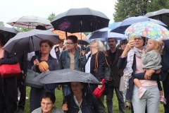 Z rąk starostów dożynkowych chleb i miód odebrali gospodarze dożynek, którzy wraz z wójtami powiatu wyszkowskiego podzielili się nimi z uczestnikami uroczystości.