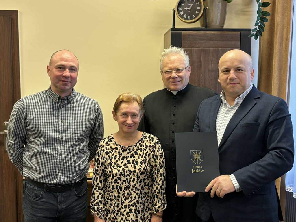 27 stycznia w gabinecie Burmistrza podpisana została umowa na przekazanie środków finansowych w ramach Rządowego Programu Odbudowy Zabytków – przez Gminę Jadów dla Rzymskokatolickiej Parafii p.w. Świętego Jakuba Apostoła w Jadowie na zadanie pt.: „Remont zabytkowej kaplicy na cmentarzu parafialnym w Jadowie”. Kwota dotacji wynosi 343 199,61 zł.