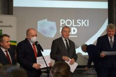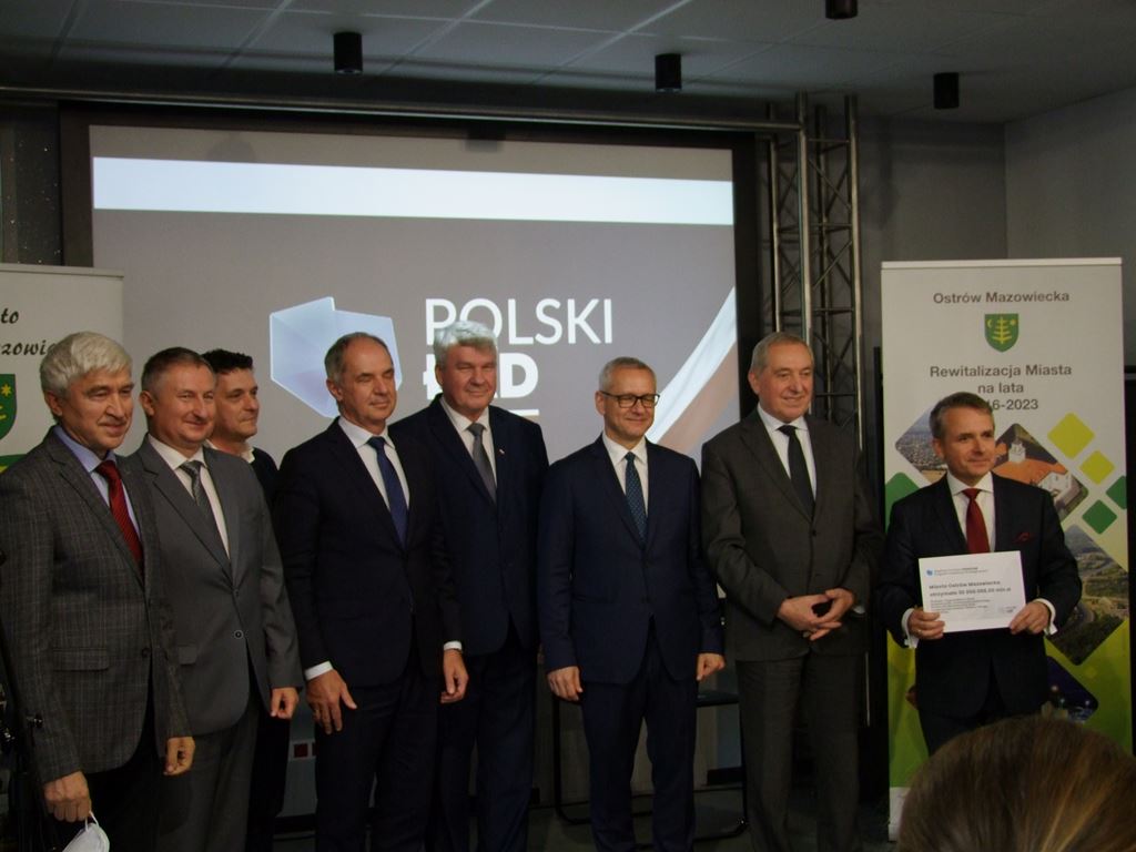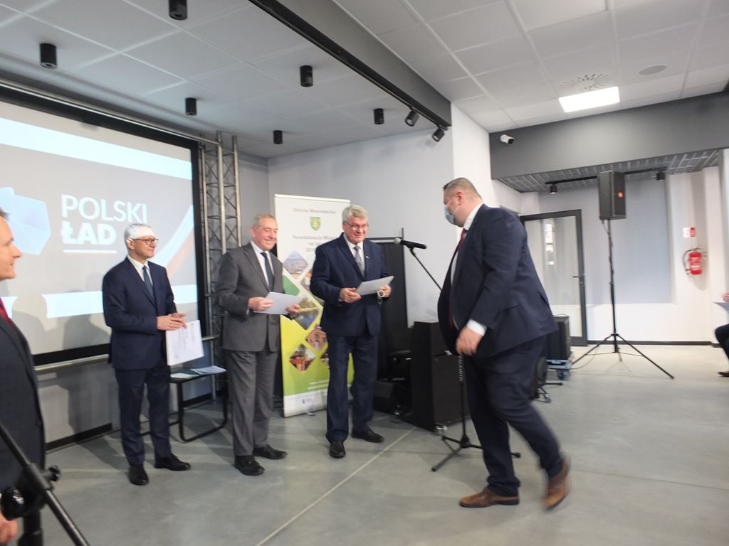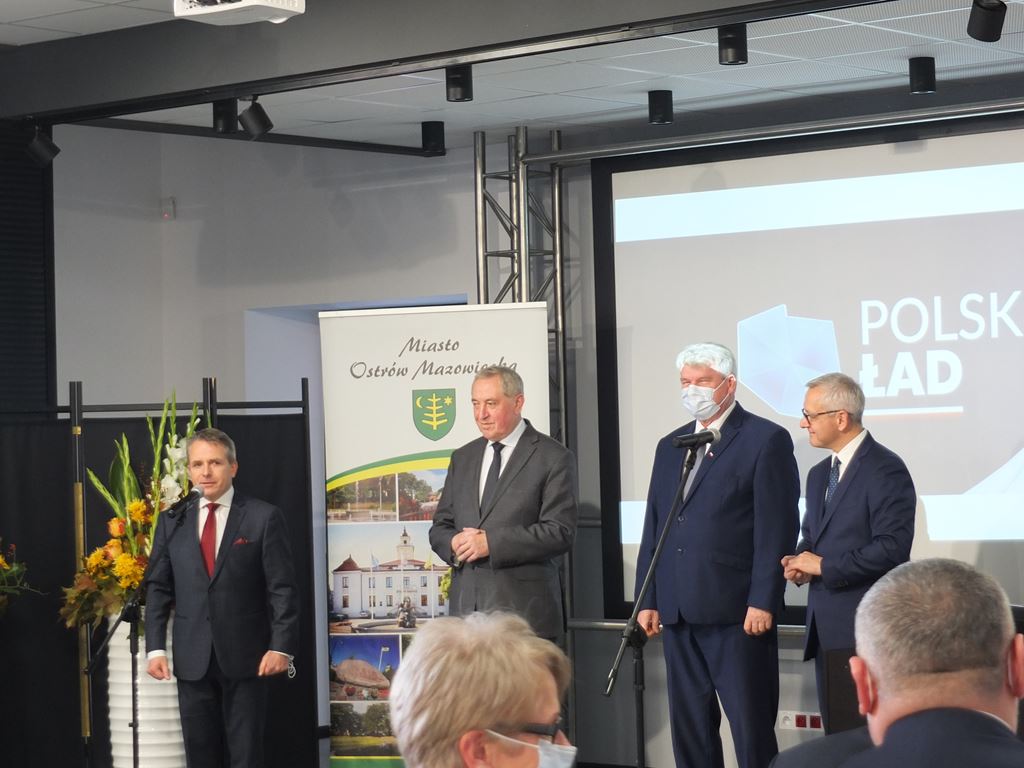 Rządowy Fundusz Polski Ład wspiera zrównoważony rozwój i nowe inwestycje, m.in. w drogi, transport publiczny, kanalizacje, szkoły czy boiska. Premier rządu polskiego Mateusz Morawiecki przedstawiając 25 października w Nidzicy wyniki I naboru wniosków mówił jak ważny to moment dla Polaków. Program wspiera rozwój lokalnej przedsiębiorczości, bo przecież firmy z naszego regionu będą uczestniczyły w pracach nad wygranymi projektami, będą tworzyć nowe miejsca pracy. Inwestycje poprawią warunki życia naszych mieszkańców. Ponadto Polski Ład jest zapewnieniem lepszej i bardziej dofinansowanej służby zdrowia, niższych podatków, a zarazem wyższej płacy Polaków. Dodatkowo rządowy plan rozwoju na lata pomoże wyjść z kryzysu wywołanego pandemią COVID-19. Patrząc na skalę środków, które trafią do samorządów należy spodziewać się dokonania epokowego skoku cywilizacyjnego. Promesy samorządowcom wręczyli w Ostrowi Mazowieckiej: poseł Henryk Kowalczyk, senator Robert Mamątow, poseł Marek Zagórski oraz gospodarz miasta i obiektu burmistrz Jerzy Bauer, który również odebrał podczas tej imprezy dofinansowane z rekordową kwotą 30 mln złotych. Ze strony wielu samorządowców widać było zaskoczenie i czasami niedowierzanie, jak wiele projektów otrzymuje dofinansowanie, nie mówiąc o kwotach jakie trafia do ich gmin i miast. Każdy z włodarzy odbierając swoją promesę wyrażał podziękowanie i zadowolenie. Jak się okazało, np. gmina Andrzejewo ubiegała się o dofinansowanie kilku wniosków zakładając, że otrzyma tylko na jeden, a otrzymała dofinansowanie do wszystkich i w kwotach bardzo istotnych dla ich budżetu. Zresztą jak nie można było się cieszyć, gdy z kolei inna gmina otrzymała dofinansowanie do swojego projektu w wysokości połowy budżetu gminy? Wiele padło słów podziękowań, a niektórzy zwracali się do parlamentarzystów o więcej. Poseł Henryk Kowalczyk zapewniał, że to dopiero pierwszy nabór i rozdysponowano
