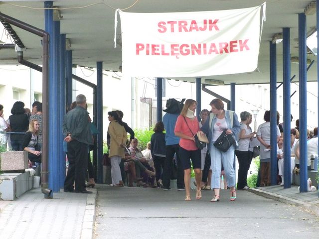 Pielęgniarki powstrzymują się od pracy, ale cały czas przebywają na terenie szpitala. Nad wejściem został zawieszony baner „Strajk pielęgniarek”, poniżej wokół wejścia zgromadziły się strajkujące.