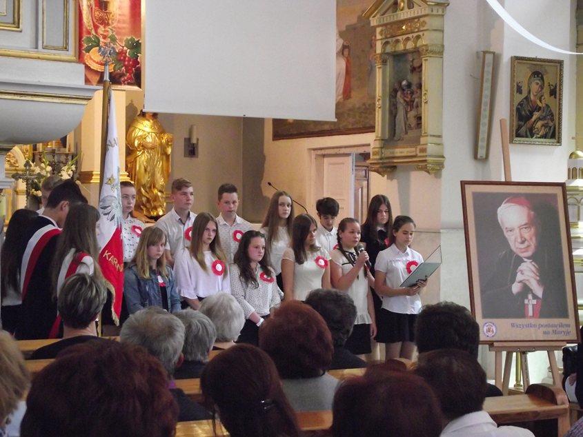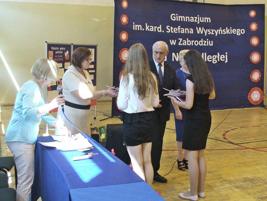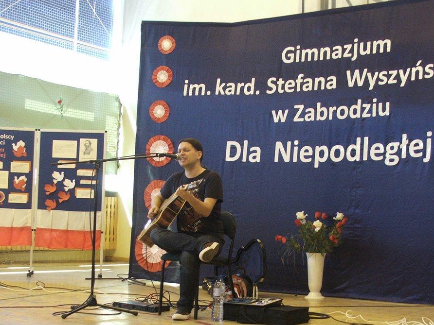 Obchody rozpoczęły się jak co roku Mszą Świętą odprawioną w niegowskim Kościele. Od 2001 roku w rocznicę śmierci Patrona gimnazjaliści modlą się o beatyfikację Kardynała Wyszyńskiego i błogosławieństwo dla Ojczyzny oraz społeczności szkolnej. Mszę sprawowali: ks. Dziekan Stanisław Popis, ks. Proboszcz Andrzej Rybicki i ks. Wojciech Miliszkiewicz. W homilii ks. Dziekan kilkakrotnie nawiązywał do nauk i czynów Prymasa. Po mszy dyrektor szkoły Elżbieta Oleksiak przybliżyła zgromadzonym postać Kardynała Wyszyńskiego, jako wielkiego kapłana i Polaka walczącego niezłomnie o najważniejsze wartości chrześcijańskie i moralne. Stwierdziła, że dzisiejsze oblicze Polski w dużej mierze zawdzięczmy Prymasowi Tysiąclecia i przytoczyła jego słowa: „Ojczyznę kocham więcej niż własne serce. Wszystko co czynię dla kościoła, czynię dla niej”. Uczniowie przygotowani przez p. Agnieszkę Powierżę, p. Wiesławę Paź i p. Jacka Gajewskiego zaprezentowali montaż słowno-muzyczny pod tytułem „Kardynał Wyszyński – wielki kapłan i Polak”. Zaśpiewali, m.in. pieśni: „Sutanna”, „Ojczyzna ma” , „Rota”. 28 maja obchody rozpoczął konkurs wokalny „Moja Ojczyzna Niepodległa”. Wzięli w nim udział uczniowie zabrodzkich szkół podstawowych i uczniowie gimnazjum. Komisja konkursowa w składzie: p. Kazimiera Wójcik (przewodnicząca), p. Ewa Rytelewska, p. Hanna Fornal, p. Wiesława Oleksiak przyznała: w kategorii dla klas I-III – pierwsze miejsce Jakubowi Gołaszewskiemu (SP Zabrodzie), który zaśpiewał piosenkę „Szara piechota”; w kategorii kl. IV-VII – pierwsze miejsce wyśpiewały Gabriela Rucińska i Matylda Pilarczyk (SP Dębinki) – piosenką „Ostatni list”, a wśród artystów reprezentujących gimnazjum I miejsce zajęły uczennice kl. II B Ewa Świerzak i Oliwia Pękul, które zaśpiewały ,,Siwy mundur”. Poza konkursem zaśpiewały panie z Zespołu „Sława”: p. Wiesława Oleksiak -„Świat cały śpi spokojnie” i p. Hanna Fornal – „Siwy mundur”. Nagrody wręczyli : Wójt Gminy Zabrodzie p. Tadeusz Michalik i dyrektor gimnazjum p. Elżbieta Oleksiak. Konkurs zorganizowali nauczyciele gimnazjum: p. Wiesława Paź, p. Ewa Radzka i p. Jacek Gajewski. Wśród zaproszonych gości znalazła się rodzina państwa Wernio. Uczniowie gimnazjum złożyli Adasiowi życzenia z okazji Dnia Dziecka i wręczyli prezent ufundowany przez Radę Rodziców. Mama Adasia podziękowała całej społeczności szkolnej i zaprosiła wszystkich na Piknik charytatywny, który odbędzie się 24 czerwca na ORLIK-u w Zabrodziu. O 11:00 rozpoczął się program profilaktyki uzależnień w wykonaniu Gabriela Fleszara pt. „Wolności oddać nie umiem”. W trakcie słowno-muzycznego recitalu artysta zaprezentował opowieści ze swojego życia mające przestrzec przed wchodzeniem na drogę uzależnień. Z wielką przyjemnością zebrani wysłuchali piosenek w wykonaniu artysty, m.in. „Kroplą deszczu”, „Bilet do nieba”, „Kto panem kto sługą”. W przerwie były kiełbaski z grilla. Można było też podziwiać przygotowaną przez p. Monikę Orłowską-Więch, p. Emilię Zalewską, p. Zdzisława Bieńkowskiego wystawę „Droga do wolności mojej miejscowości”. Zainteresowani mogli obejrzeć przyniesione przez Jana Fornala matryce, gazety i ulotki drukowane, m.in. przez niego. Szkoła wzięła udział w „Narodowym” czytaniu. Jego organizatorami byli: p. Agnieszka Stępień, p. Olga Oleksiak, p. Jolanta Nowak. Poproszeni goście: p. Wójt Tadeusz Michalik, p. kierownik GOPS-u w Zabrodziu Irena Dziarska, p. dyrektor GOK-u Małgorzata Wiśniewska, przewodnicząca Rady Rodziców p. Ewa Markuszewska, p. dyrektor KRUS w Warszawie Joanna Bala, przewodnicząca Samorządu Szkolnego Julia Banasiak oraz p. dyrektor gimnazjum Elżbieta Oleksiak przeczytali fragmenty wybranych przez siebie lektur o tematyce narodowej. Pani Emilia Zalewska podsumowała zorganizowany przez siebie konkurs profilaktyczny ,,Wybieram wolność”.