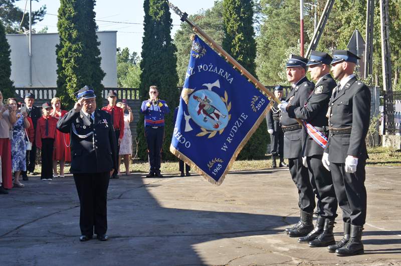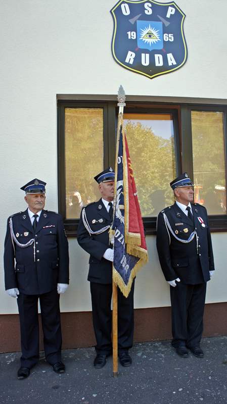 Po zakończeniu Liturgii uroczystości przeniosły się na plac przed strażnicą OSP Ruda, gdzie po złożeniu meldunku, odegraniu hymnu „Rycerze Św. Floriana” oraz podniesieniu flagi ZOSP RP na maszt, głos zabrał Prezes OSP Ruda