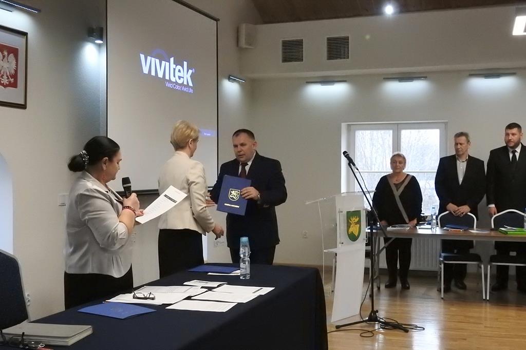 Po wystąpieniu z-cy przewodniczącego Miejskiej Komisji Wyborczej – Bożeny Warzycha, radni otrzymali zaświadczenia o wyborze i nastąpił uroczysty moment ślubowania.