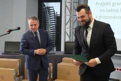 Spotkanie było okazją do przedstawienia nowego dyrektora SP nr 4. Burmistrz Jerzy Bauer podziękował Piotrowi Siwkowi za 4 – letnie pełnienie funkcji dyrektora Szkoły Podstawowej nr 4 i przedstawił nowego dyrektora „czwórki” Michała Chojnowskiego, któremu życzył powodzenia w podejmowaniu kolejnych wyzwań. Wręczył również Dorocie Brzostek, dyrektorowi Szkoły Podstawowej nr 2, nagrodę jubileuszową. Następnie odbyło się uroczyste ślubowanie Moniki Jechny – nauczyciela w Miejskim Przedszkolu Nr 2 oraz wręczenie Aktu nadania stopnia zawodowego nauczyciela mianowanego. Kolejnym ważnym wydarzeniem było przekazanie na ręce dyrektorów szkół podstawowych laptopów zakupionych w ramach projektu ,,Zdalna szkoła +”. To już drugi konkurs organizowany przez Centrum Projektów Polska Cyfrowa. Jednostki Samorządu Terytorialnego mogły uzyskać 100% dofinansowania na zakup sprzętu komputerowego, umożliwiającego realizację zdalnych lekcji uczniom, potrzebującym wsparcia w tym zakresie. Miasto otrzymało grant w wysokości 104 580 zł na zakup 42 laptopów dla uczniów. W pierwszej edycji był to grant w wysokości 80 000 zł, w ramach, którego zakupiono 28 laptopów i 8 tabletów. Burmistrz podziękował dyrektor Oświaty, Kultury i Integracji Społecznej Dorocie Ambroziak oraz skarbnik miasta Annie Wilczyńskiej za zaangażowanie, pracę na rzecz szybkiego otrzymania i rozliczenia sprzętu dla szkół.